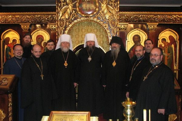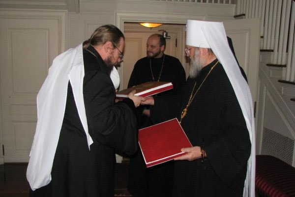 On Tuesday, December 2, 2008, the Primate of the Russian Orthodox Church Outside of Russia visited the residence of His Beatitude Metropolitan Jonah and congratulated him on his election as head of the Orthodox Church in America. Giving His Beatitude an icon of St Nicholas the Miracle-worker, His Eminence Metropolitan Hilarion expressed the hope that the prayers and omophorion of the great hierarch always accompany him in his travels, in his service and difficult archpastoral labors. Metropolitan Jonah then performed a moleben to St John of Shanghai and San Francisco at the chapel, after which the hierarchs shared a trapeza luncheon. Also at the meeting, held in the spirit of Christ’s love and mutual understanding, were His Grace Bishop John of Caracas; Protopriest Alexander Garklavs, Administrator of the Chancery of the Orthodox Church in America; Protopriest Serafim Gan, Chancellor of the Synod of Bishops and Secretary of the First Hierarch of the Church Abroad; and Reader Dionisii Lvov.