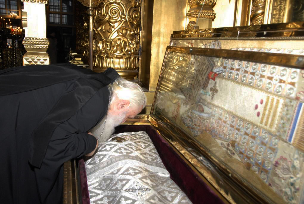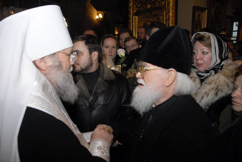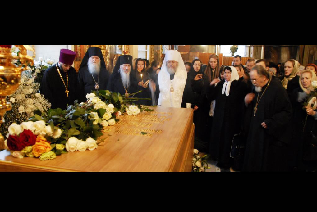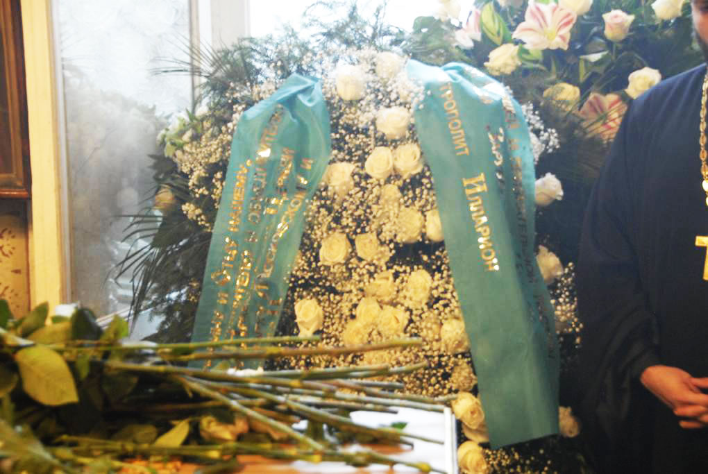 During his final day in Moscow, His Eminence Metropolitan Hilarion went to Epiphany Cathedral, where he presented a wreath on behalf of the Russian Orthodox Church Outside of Russia and performed a litia over the coffin of His Holiness Patriarch Alexy.