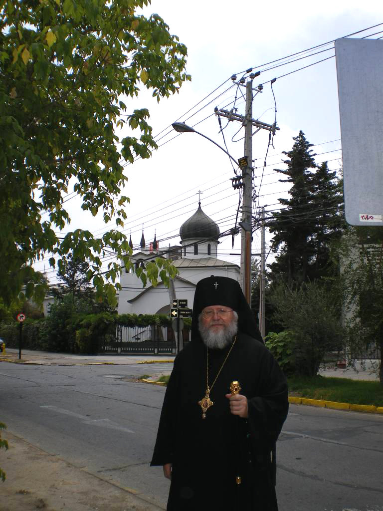 Archbishop Hilarion and Fr Michael then headed for the residence of His Eminence Metropolitan Sergius of the Antiochian Church, the sole Orthodox bishop in chile, to present themselves and pay him his due respect. With the help of a translator, a junior member of the Russian Embassy in Chile by the name of Dionisy, the two hierarchs were able to hold a conversation on various topics. At the end of their visit, they exchanged gifts.