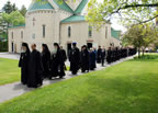 On Sunday June 1, Holy Trinity Seminary celebrated commencement ceremonies for the graduating class of 2008.  His Eminence Metropolitan Hilarion of Eastern America and New York presided over the ceremonies, having celebrated Divine Liturgy on the same morning and the all-night vigil on Saturday night. The graduates, along with other students, participated in the Divine Services as clergy, altar servers, and on kliros.  At two o'clock in the afternoon, the Seminary and Monastery communities gathered at Holy Trinity cathedral for the thanksgiving moleben, which was presided over by His Eminence Metropolitan Hilarion, who was joined by Archimandrite Luke, the newly-assigned acting rector; Hieromonk Theophylact, the Dean of Students; Deacon Alexej Pjawka, the Seminary’s Administrative Assistant; and Hierodeacon Seraphim Baltic, representing the graduating class of 2008.