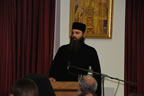 Bachelor of Theology degrees were awarded to seven students – Julian Grachev, Hierodeacon Seraphim Baltic (magna cum laude), Novice Sergei Tkach (summa cum laude), Alexei Lemmer (cum laude), Ivan Belya, Dmitri Turich, and Arsenii Pilguk. Certificates in Theological Studies were awarded to Andrei Maximov and John Sarantakis. Hieromonk Seraphim Baltic and Alexei Lemmer addressed the gathering on behalf of the graduating class.