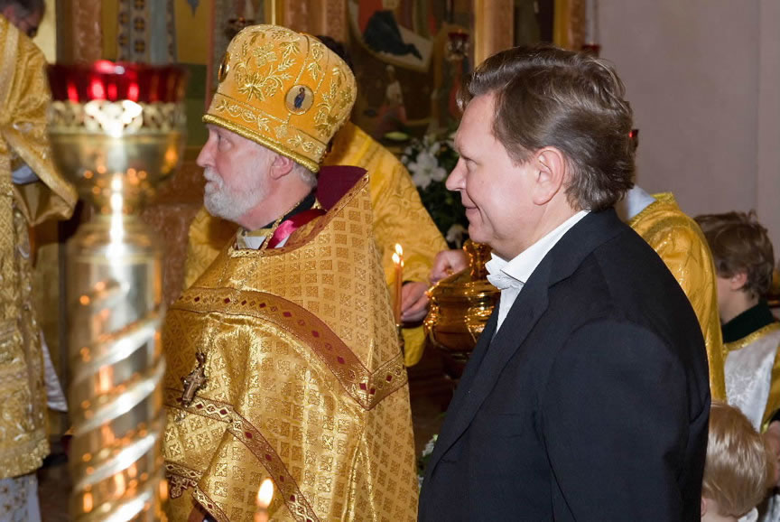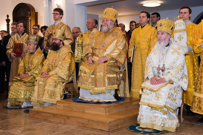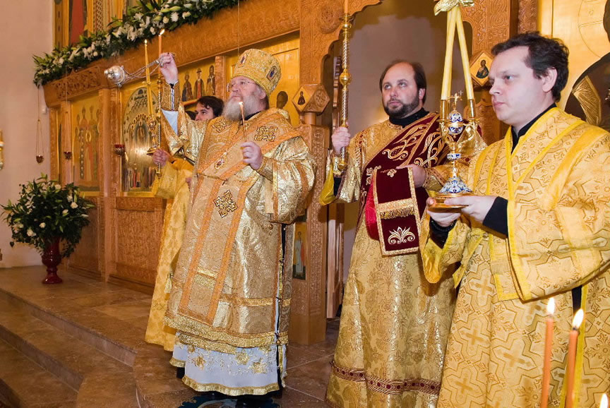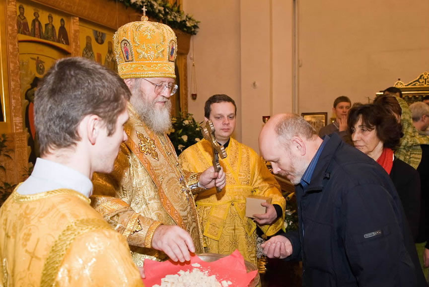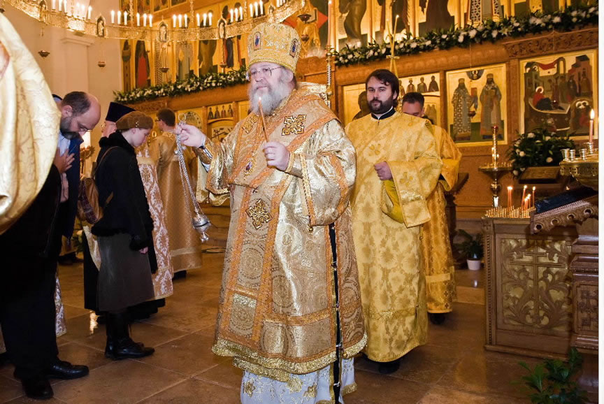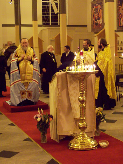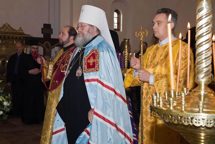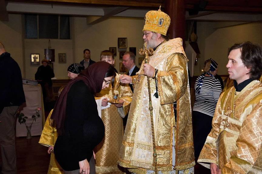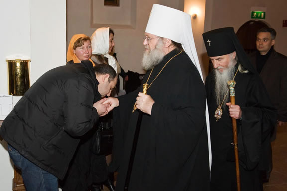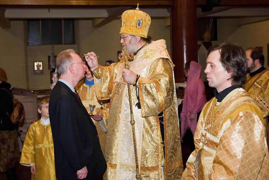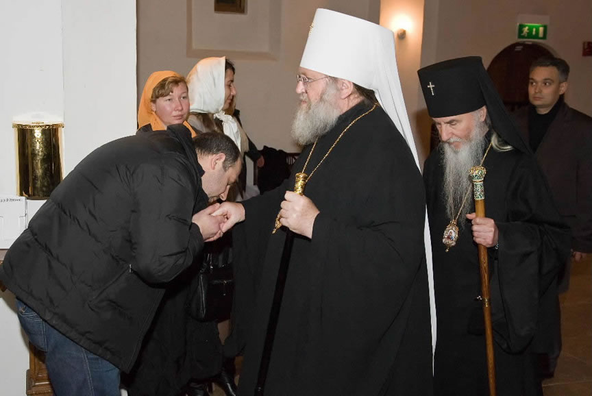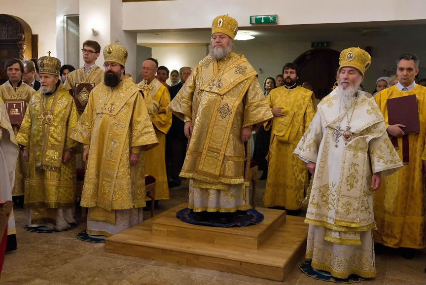After the services, the Cathedral parish offered a festive luncheon. That evening, the hierarchs performed all-night vigil in Dormition Cathedral of the Sourozh Diocese, at the end of which Bishop Elisei hosted an evening reception in honor of the First Hierarch of the Russian Church Abroad. The next morning, Sunday, November 15, Metropolitan Hilarion celebrated Divine Liturgy at Nativity of the Mother of God Cathedral.