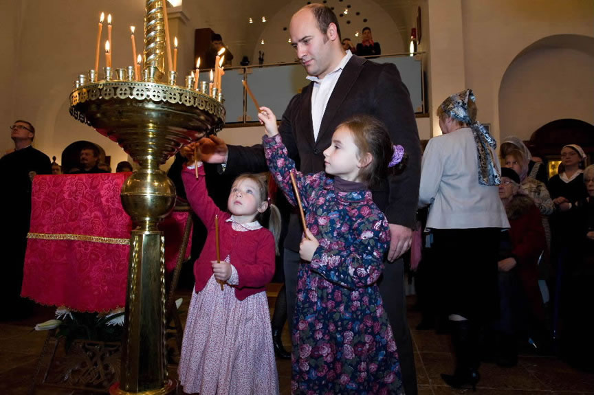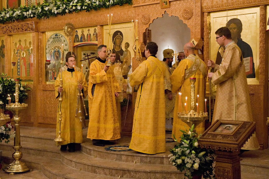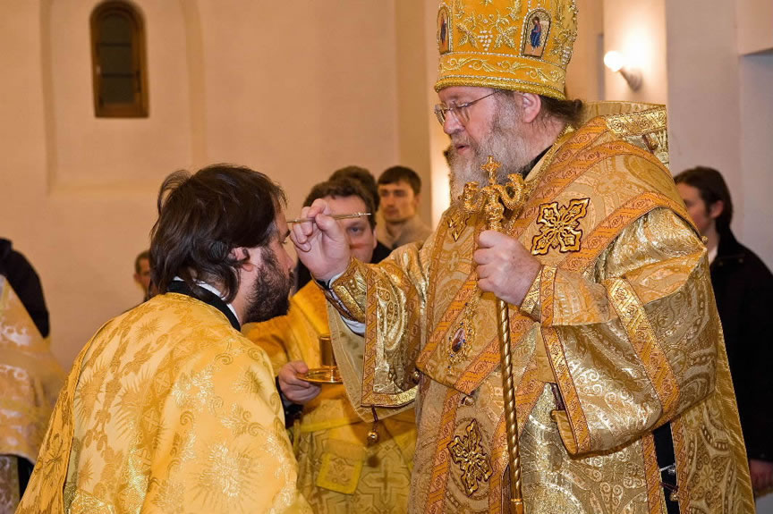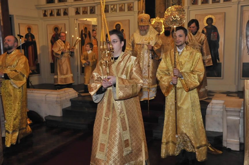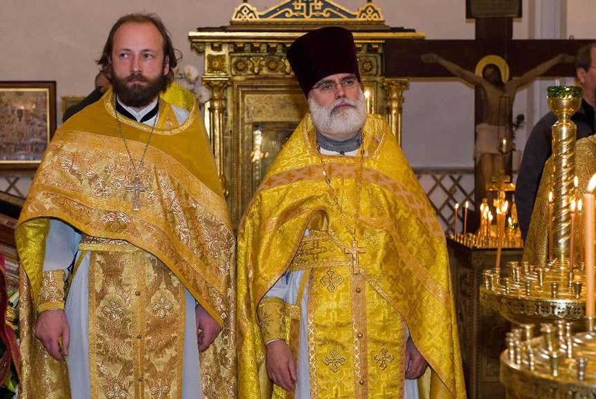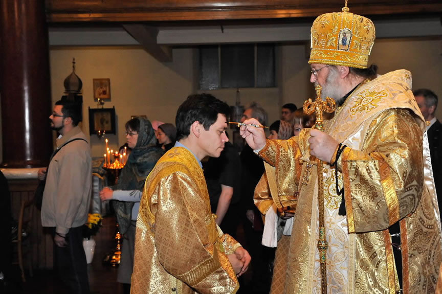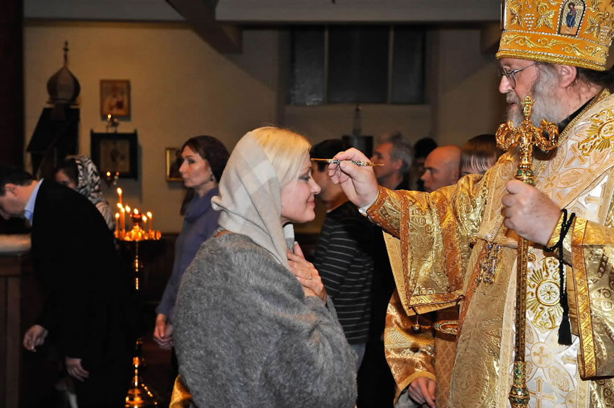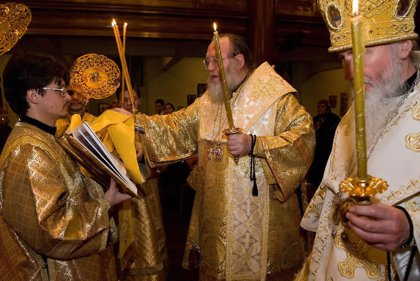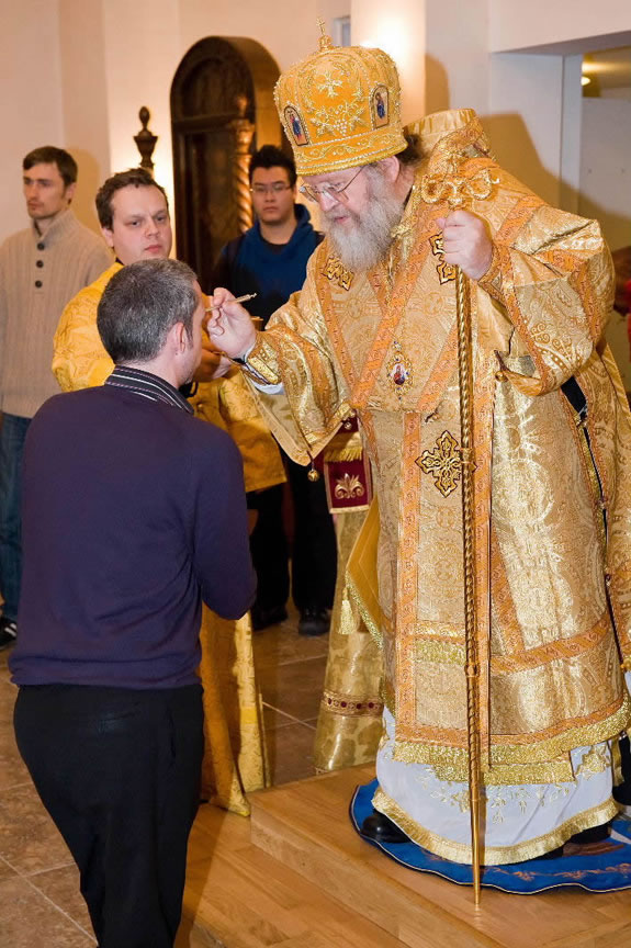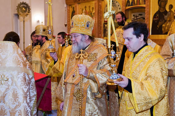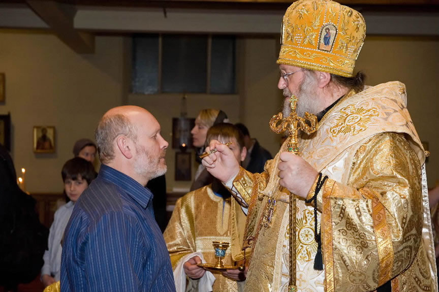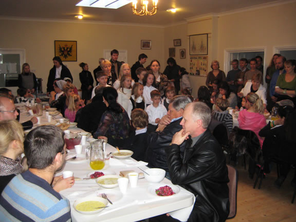 After the services, the Cathedral parish offered a festive luncheon. That evening, the hierarchs performed all-night vigil in Dormition Cathedral of the Sourozh Diocese, at the end of which Bishop Elisei hosted an evening reception in honor of the First Hierarch of the Russian Church Abroad. The next morning, Sunday, November 15, Metropolitan Hilarion celebrated Divine Liturgy at Nativity of the Mother of God Cathedral.