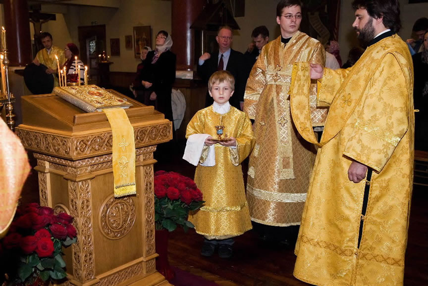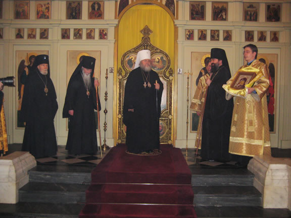 From November 9-15, 2009, His Eminence Metropolitan Hilarion visited the parishes of the Russian Orthodox Church Outside of Russia in Liverpool, Mattingham and Colchester, and performed a moleben at the relics of St Alban the Martyr. His Eminence's schedule in London included meetings with Metropolitan Kallistos (Ware) of Diokleia and Orthodox students of Oxford University. Metropolitan Hilarion also met with the Archbishop of Canterbury, Rowan Williams, and visited Westminster Abbey. Later, Yuri Fedotov, Russian Ambassador to the United Kingdom, hosted a reception in honor of the high guest.