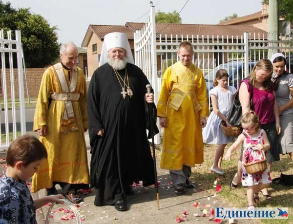 On day of the 50th anniversary, priests and parishioners from throughout Sydney’s churches gathered for Divine Liturgy. A group of worshipers from the Cathedral in Strathfield arrived by bus, and visitors even came from other cities. The fact that His Eminence Metropolitan Hilarion, who flew in from New York, officiated at the service imparted special ceremony to the event. Vladyka was joined in the service by Priest David Lloyd, Rector of Archangel Michael Church, as well as Priest Alexander Filchakov, who recently came to the Australian Diocese from Moscow, Priest George Robinson of Queanbeyan and Priest Seraphim Slade.