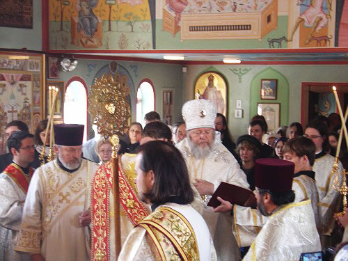 On Saturday, February 7, 2009, the eve of the feast day of the Holy New Martyrs and Confessors of Russia and the Sunday of the Publican and the Pharisee, His Eminence Metropolitan Hilarion, First Hierarch of the Russian Orthodox Church Outside of Russia, arrived in Boston. The Metropolitan was greeted with spring-like weather: after a deep freeze and drifting snows, a thaw set in. Bright sunshine echoed the joy in the hearts of the parishioners and worshipers of Epiphany Church. Before his appointment to the Australian Diocese, Vladyka Hilarion often visited Epiphany Church as Bishop of Manhattan, so the senior parishioners greeted him as an old, dear friend. The many new members of the parish family, mostly recent emigres from Russia and its “near abroad,” met Vladyka Hilarion for the first time. Everyone without exception greeted Vladyka as a loving father.