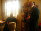 Meanwhile, the nuns were singing the canon to the Kursk-Root Icon. After the moleben, His Eminence and Fr Mark took the icon to visit a private Orthodox Christian elementary school, located five miles away at the location of the old monastery. Metropolitan Hilarion told the students about the icon’s history, and answered questions during the reception that followed.
