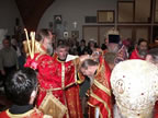 On Saturday evening, April 4, and Sunday morning, April 5, 2009, the day of St Mary of Egypt, His Eminence celebrated the all-night vigil and then Divine Liturgy along with Fr John; Fr Alexis Duncan; Fr Steven Ritter; visiting Priest Seraphim Scheidler (currently serving in Tennessee); and visiting Protodeacon Leonid Mickle from St John the Baptist Cathedral in Washington, DC. This extremely festive occasion also marked Vladyka Metropolitan’s first pastoral visit to St Mary’s. Those that had not seen him for so many years were indeed blessed to have him with us again. The hundreds of congregants were delighted and inspired by Vladyka’s presence, sermon, and many talks with parishioners between services.