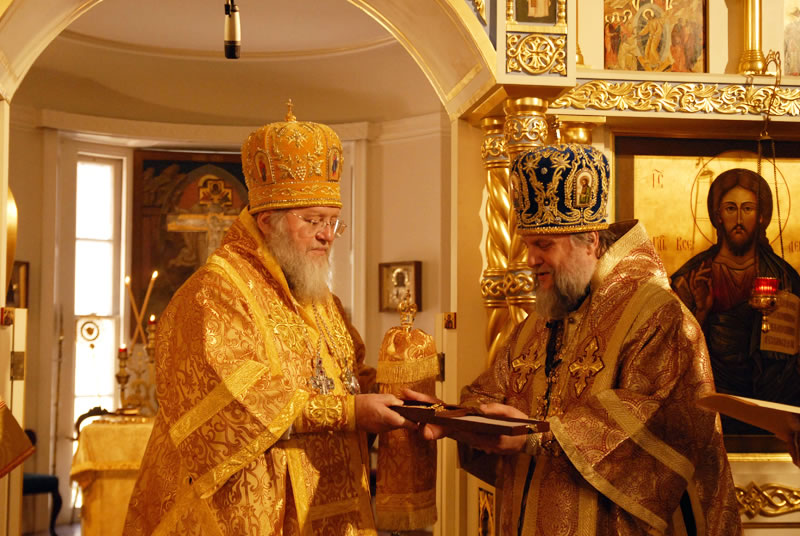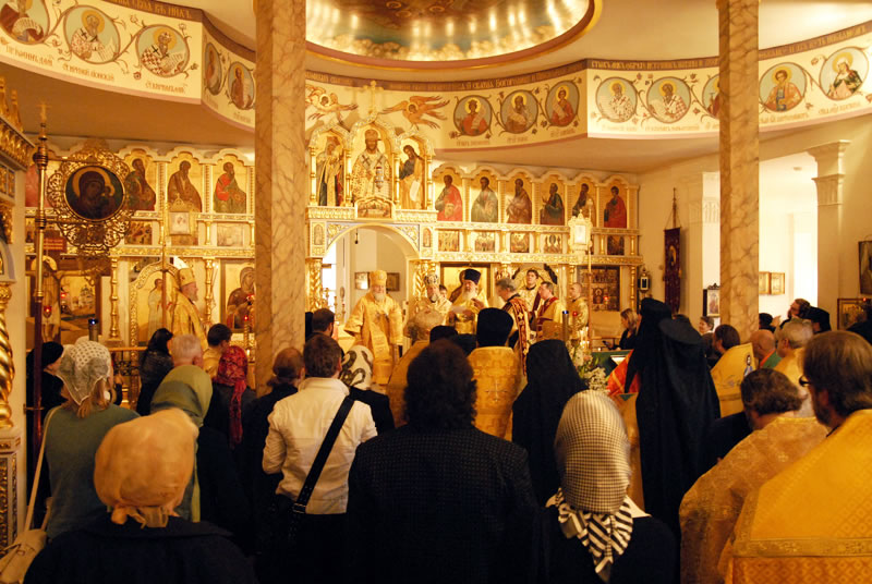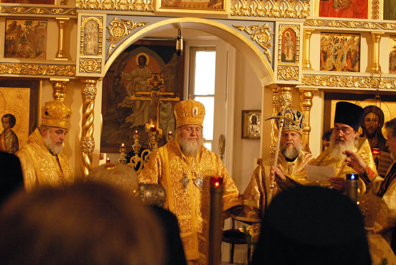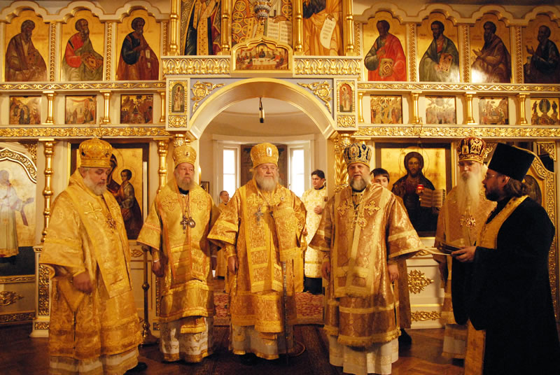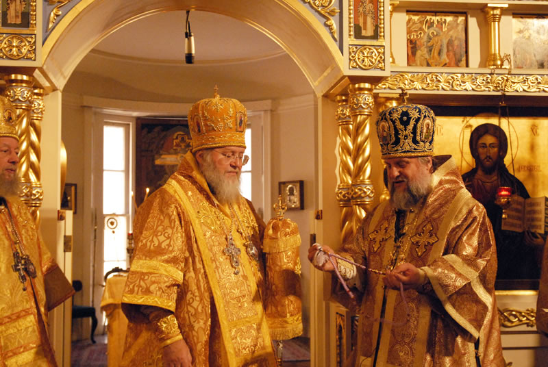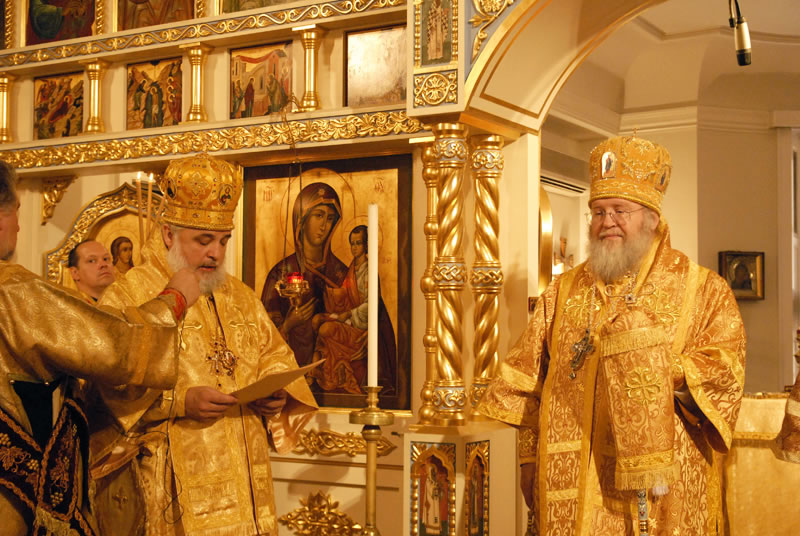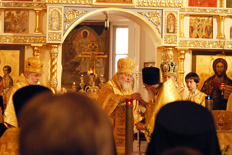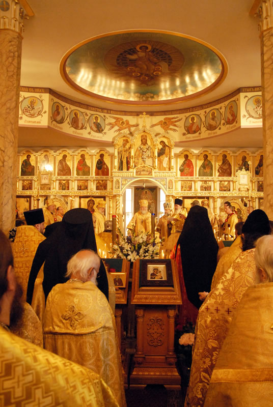 On November 3, 2010, the feast day of St Hilarion of Kievo-Pechersk, His Eminence Metropolitan Hilarion of Eastern America and New York officiated at Divine Liturgy at the Synodal Cathedral of Our Lady of the Sign. He was joined in the service by His Eminence Archbishop Ionafan of Tulshinsk and Bratslavsk; His Grace Bishop Gabriel of Montreal and Canada; His Grace Bishop George of Mayfield; His Grace Bishop Jerome of Manhattan and a host of clergymen. The myrrh-streaming Icon of the “Hawaiian Iveron” Mother of God was present during the divine service.