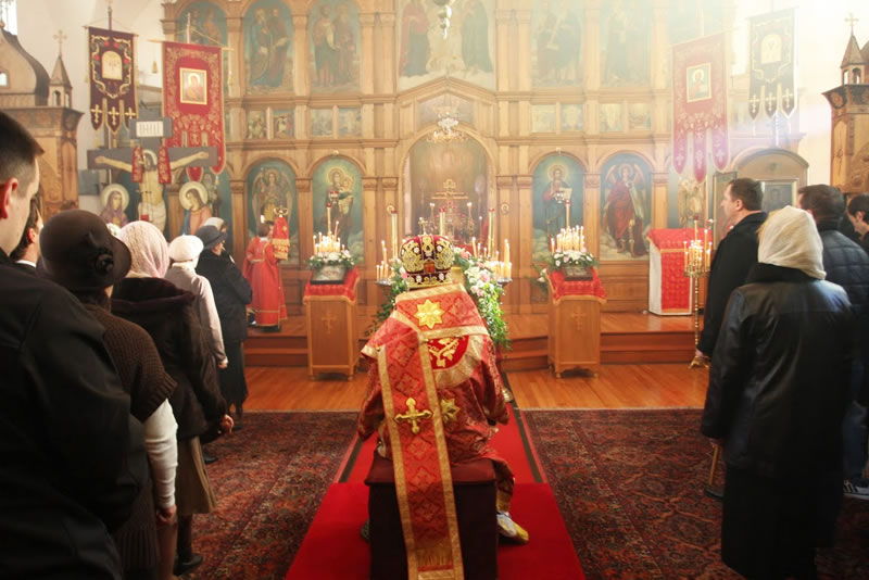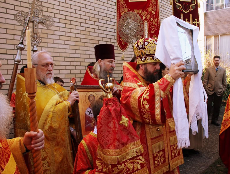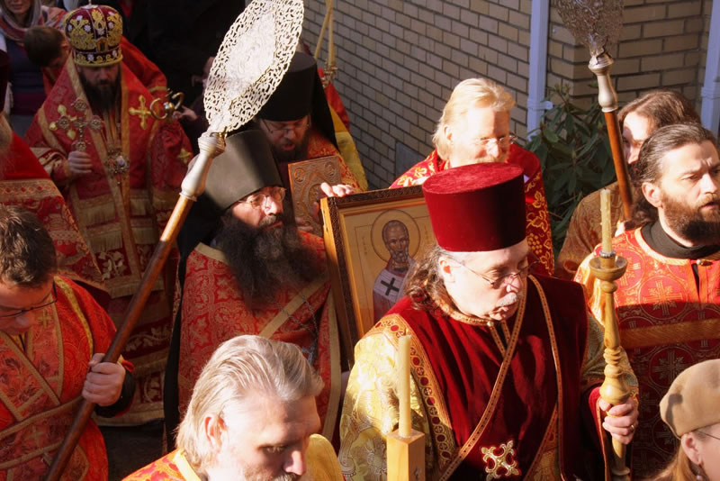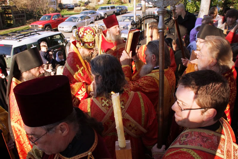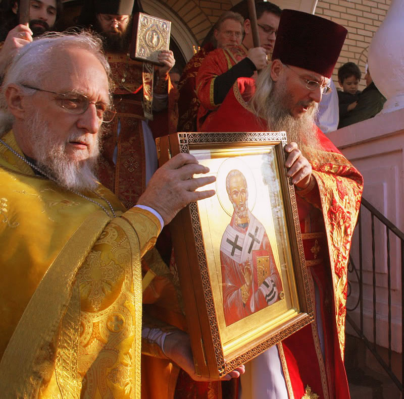 On Sunday, December 19, 2010, the feast day of St Nicholas the Wonder-worker, Archbishop of Myra, His Grace Bishop Theodosius of Seattle, Vicar Bishop of the Western American Diocese of the Russian Orthodox Church Outside of Russia, celebrated Divine Liturgy at St Nicholas Cathedral in Seattle, WA. He was joined in the service by Protopriest Alexei Kotar, Protopriest Nicholas Dalinkevich of Holy Protection Cathedral in Melbourne, Australia, and local clergymen. After the service, a moleben was served before an icon of St Nicholas containing a portion of his relics, followed by a procession of the cross around the cathedral.