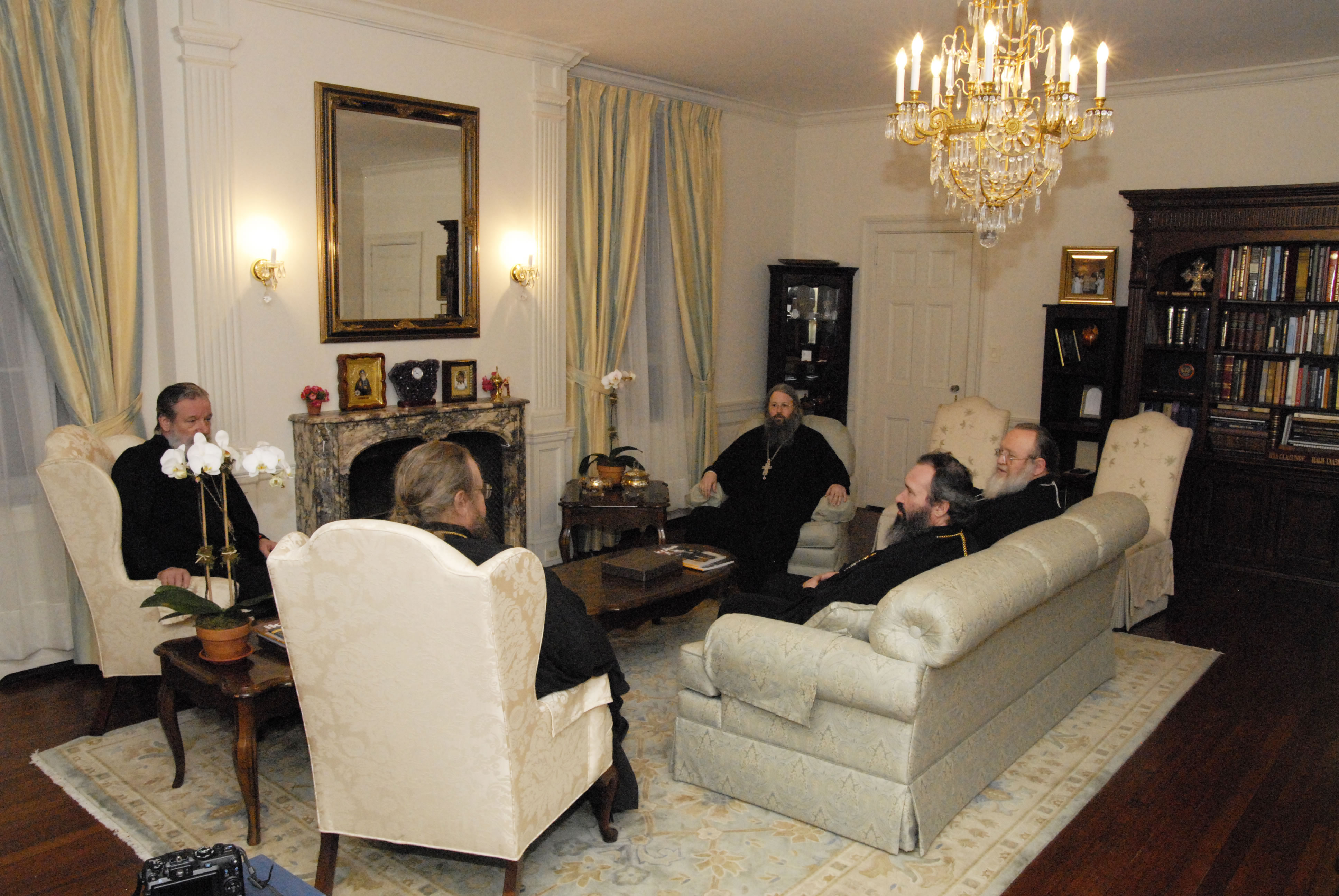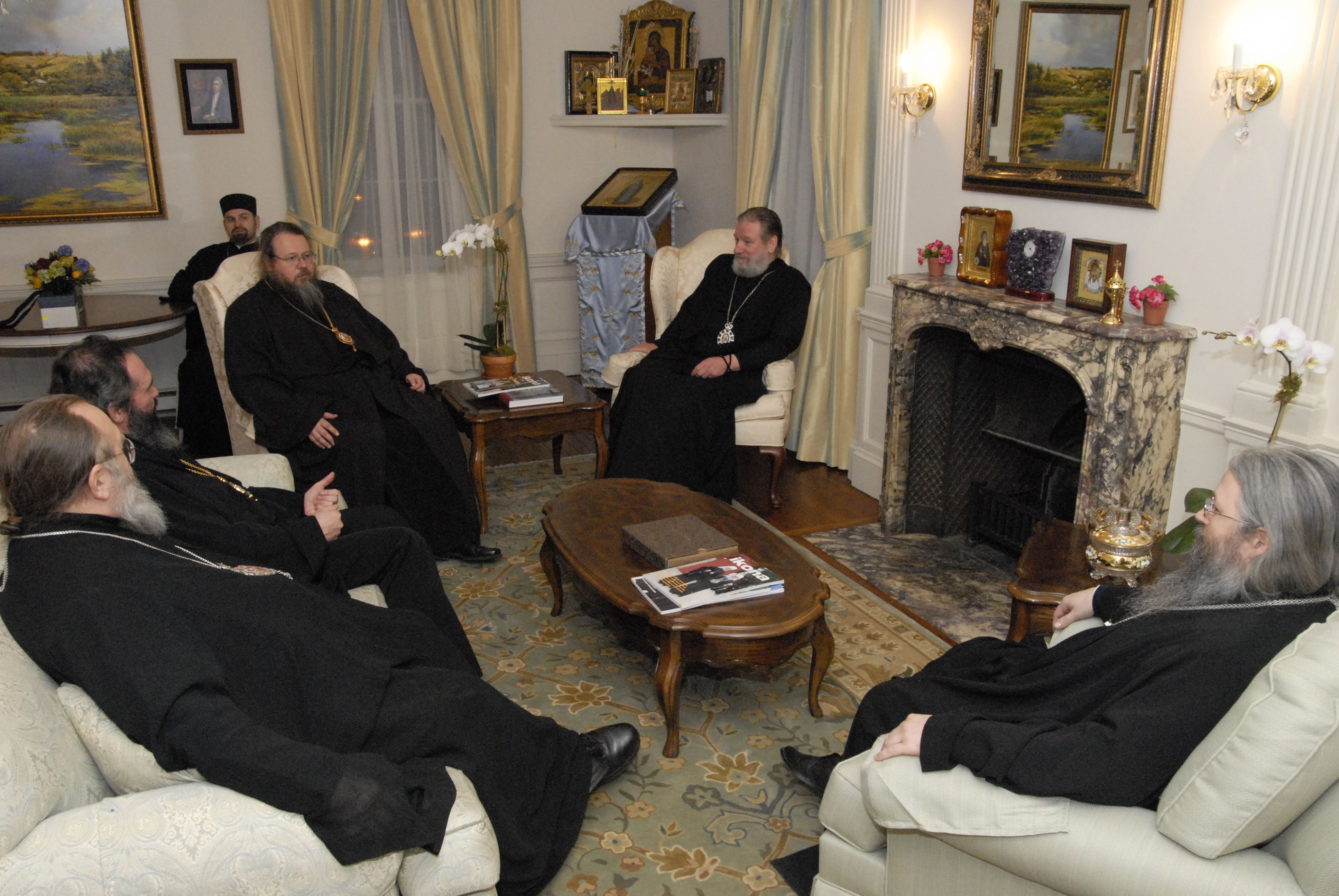 On Sunday, February 27, 2011, His Eminence Metropolitan Hilarion of Eastern America and New York, at the request of His Beatitude Metropolitan Christopher of the Czech Lands and Slovakia, received His Beatitude Metropolitan Jonah, Primate of the Orthodox Church in America, at his residence in New York. The meeting was held in a spirit of brotherly love and mutual understanding; questions of common interest were discussed. The hierarchs continued their discussions during a fraternal trapeza offered by Metropolitan Hilarion. During their exchange, Metropolitan Christopher invited Metropolitan Jonah to visit the Orthodox Church of the Czech Lands and Slovakia.