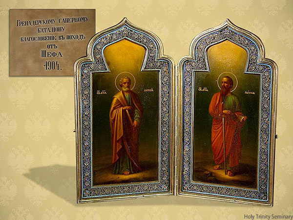 The discoveries mentioned in the paper included not only recent acquisitions, but also items that have been in the collections for some time, but have been processed and described only recently. As examples of the latter, Fr Vladimir referred to a number of books bearing the bookplates of various Romanovs, including Nicholas I, Nicholas II, Grand Dukes Konstantin Konstantinovich and Vladimir Aleksandrovich; banners presented to His Imperial Majesty’s Own Convoy by Alexander II; and icons given by members of the Romanov dynasty to various individuals.
