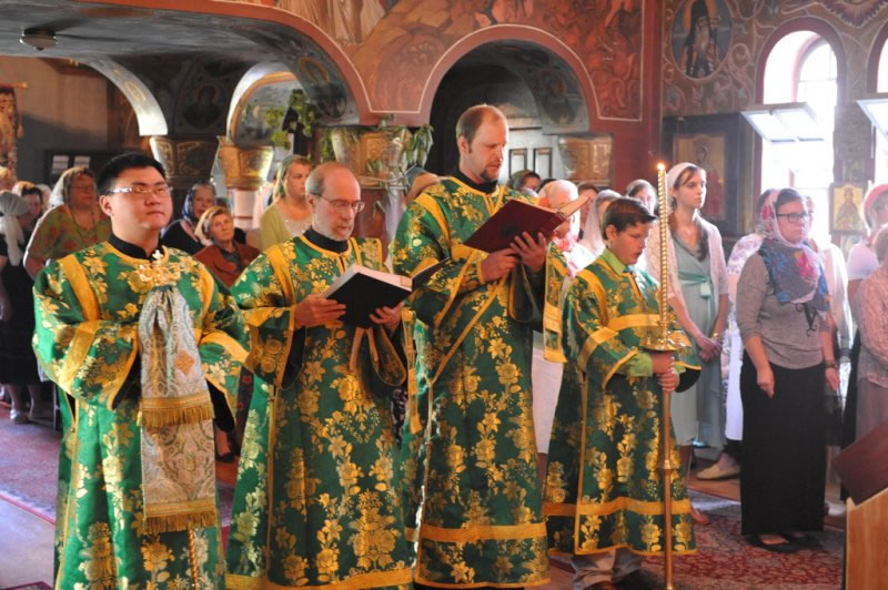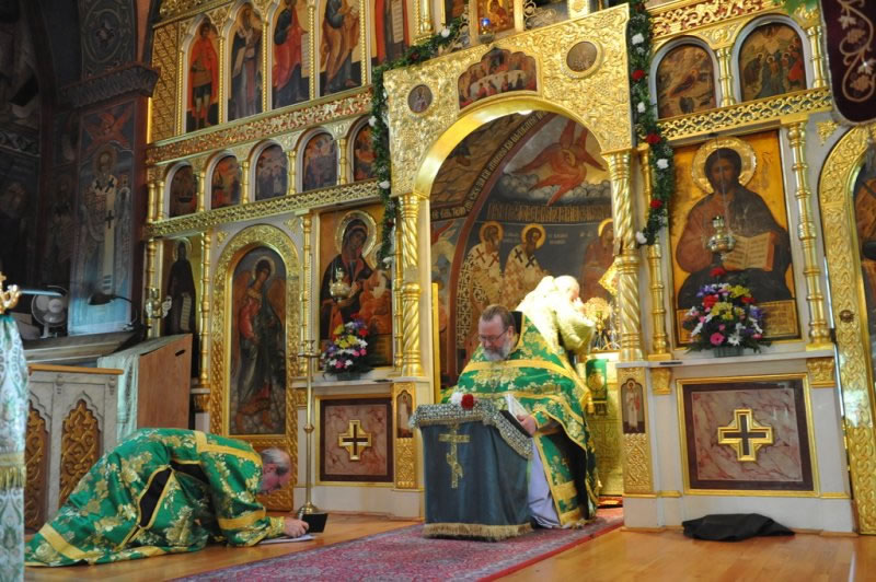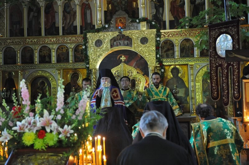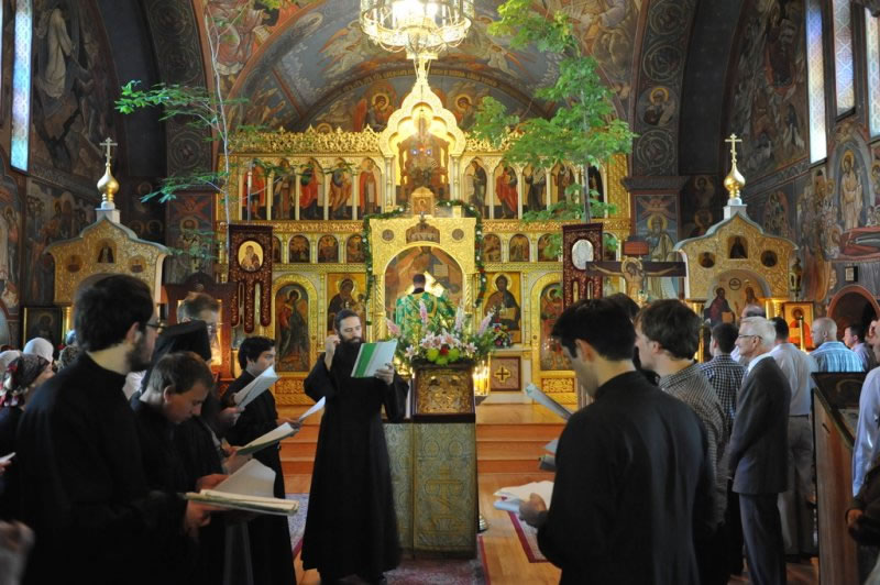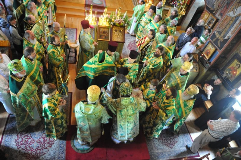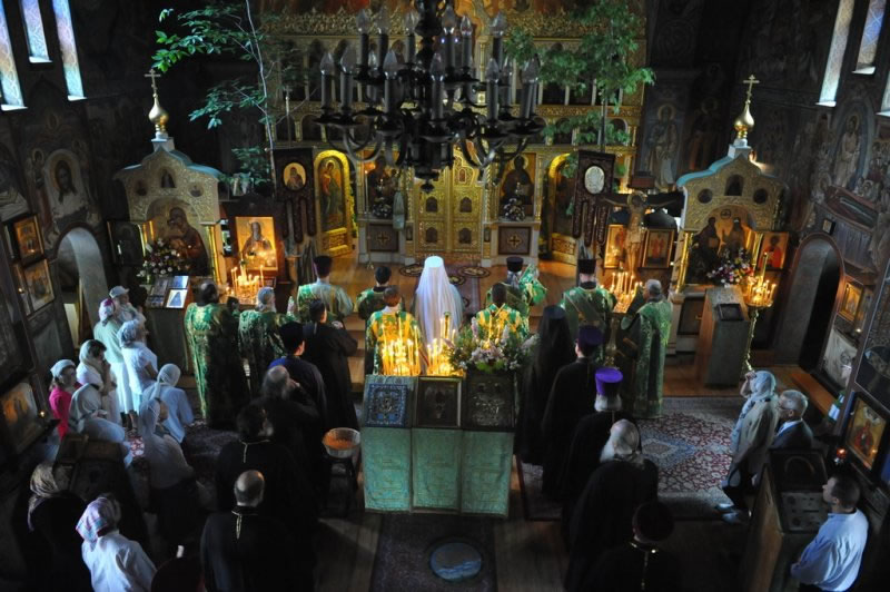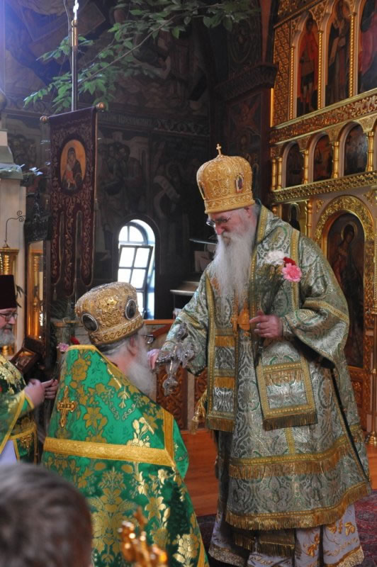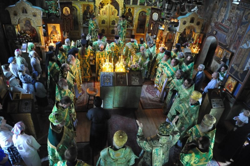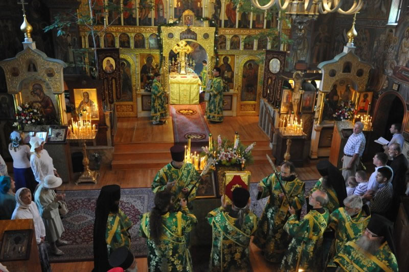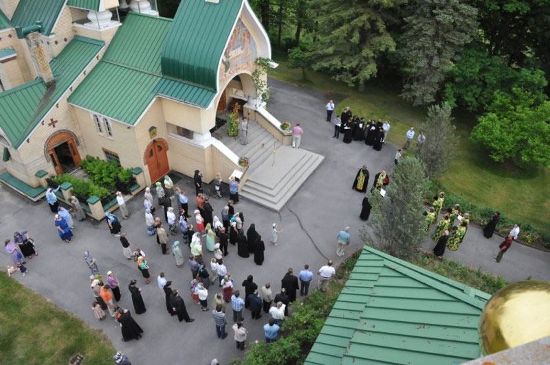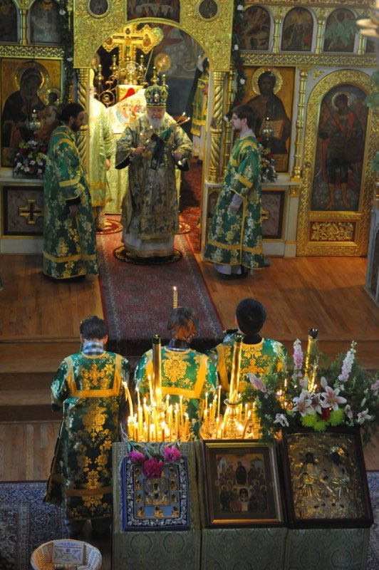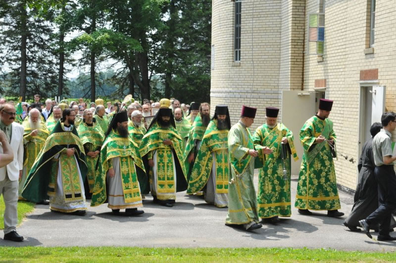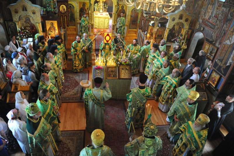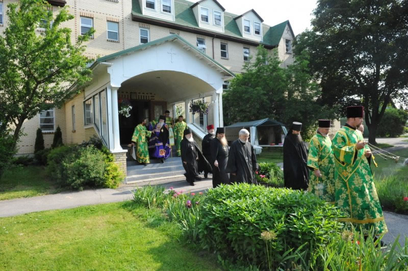 On Sunday, June 23, 2013, the feast day of Holy Pentecost, His Grace Bishop George of Mayfield, Vicar of the Eastern American Diocese, led the celebration of Divine Liturgy and great vespers with the reading of the kneeling prayers at Holy Trinity Monastery in Jordanville, NY. His Grace was joined by the monastery's abbot, Archimandrite Luke (Murianka), the monastic brethren and visiting clergymen. The next morning, the feast day of the Holy Spirit, His Eminence Metropolitan Hilarion of Eastern America and New York, First Hierarch of the Russian Church Abroad, celebrated Divine Liturgy together with many clergymen on the monastery's feast day.