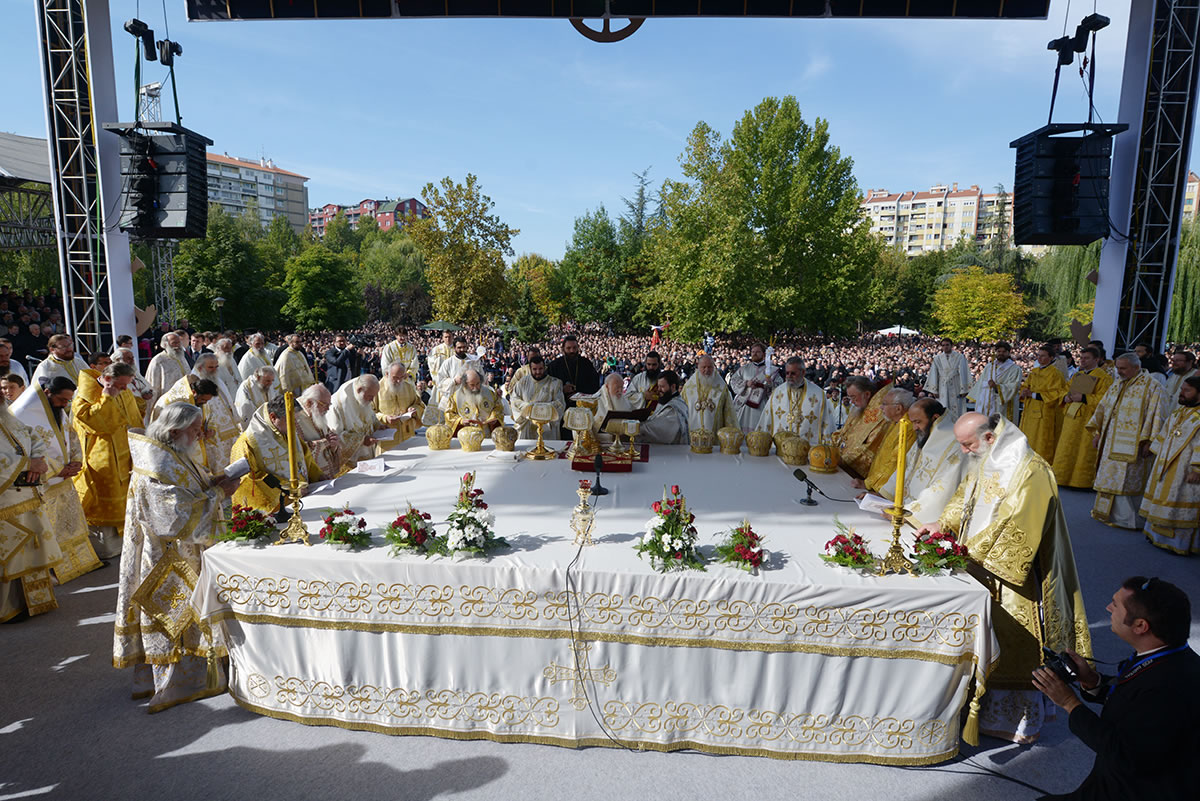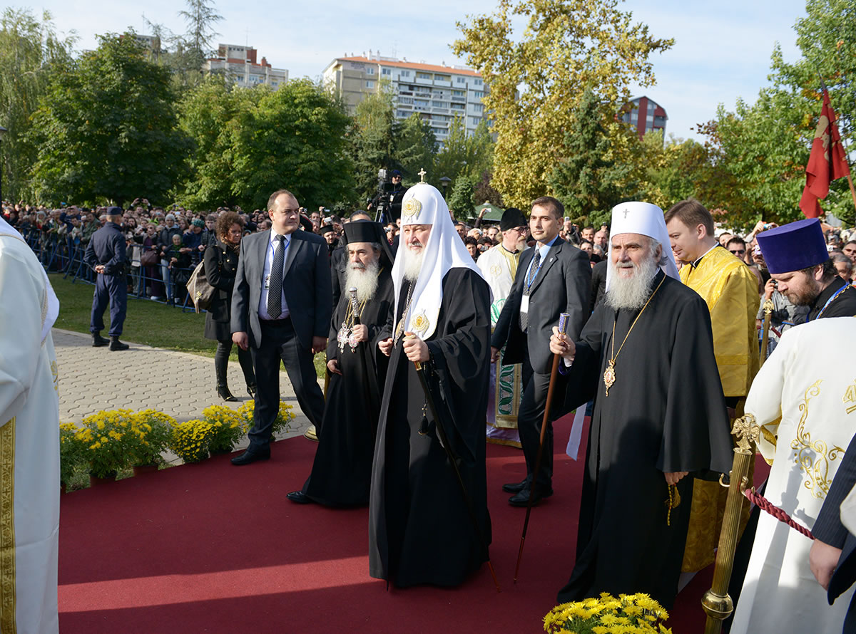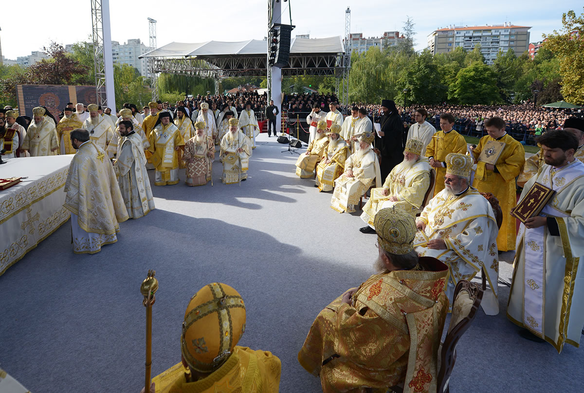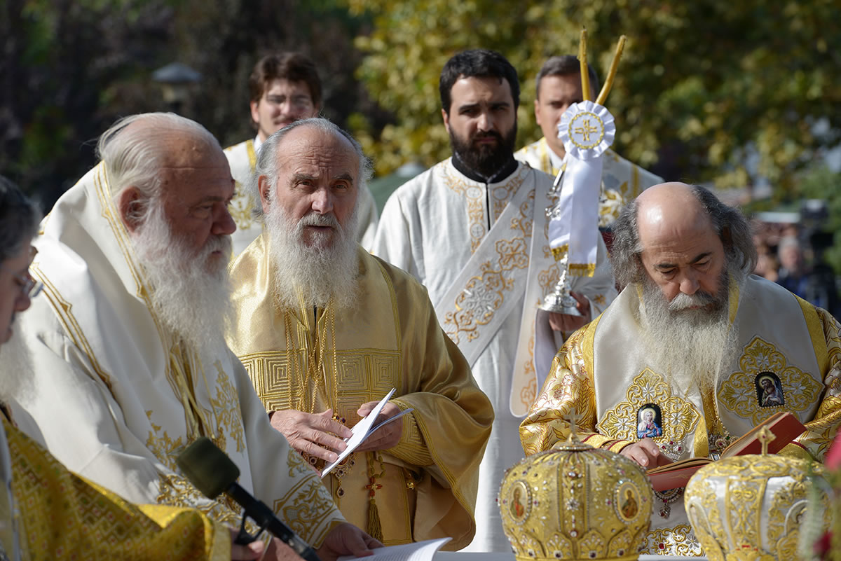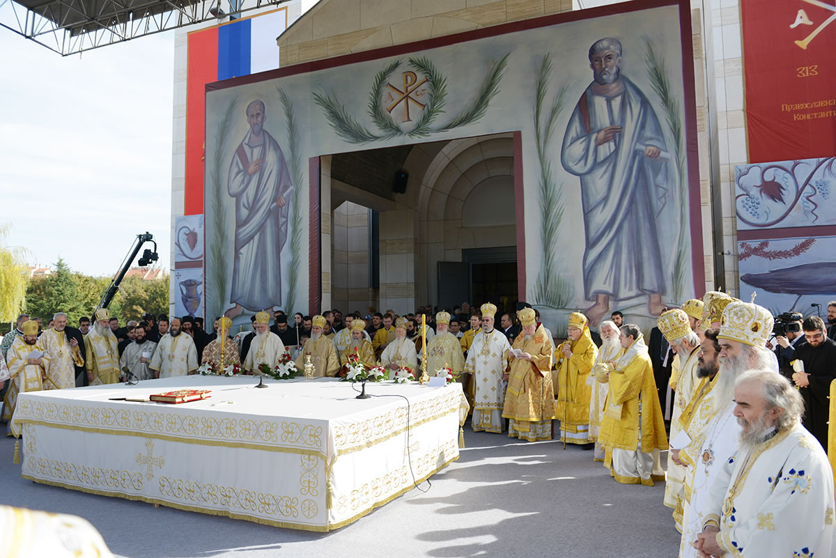 On Sunday, October 6, 2013, the feast day of the Conception of St John the Forerunner, the main celebration of the 700 th anniversary of the Edict of Milan took place in the form of Divine Liturgy on the plaza before the Church of Holy Emperors Constantine and Helena in Nis, Serbia. Nis was the birthplace of St Constantine, Equal-to-the-Apostles. The service was led by Primates of eight Local Orthodox Churches, as well as His Eminence Archbishop Mark of Berlin and Germany.