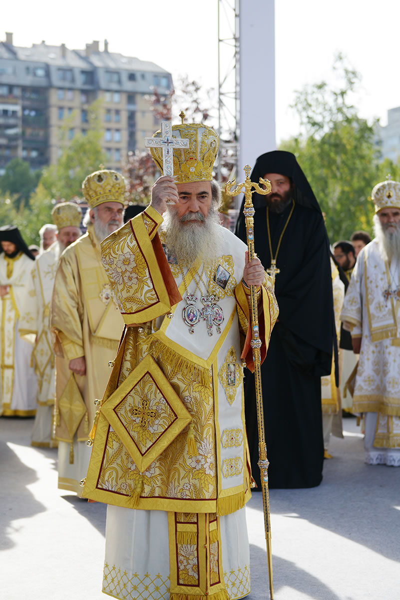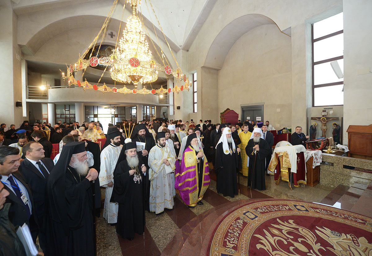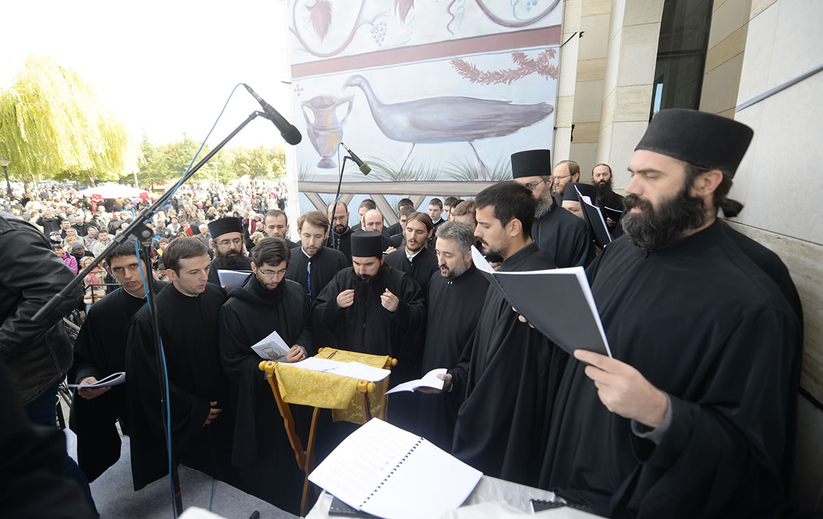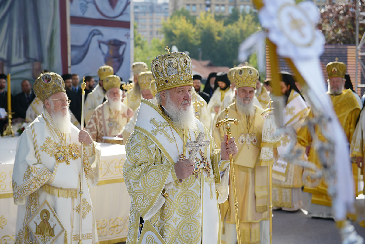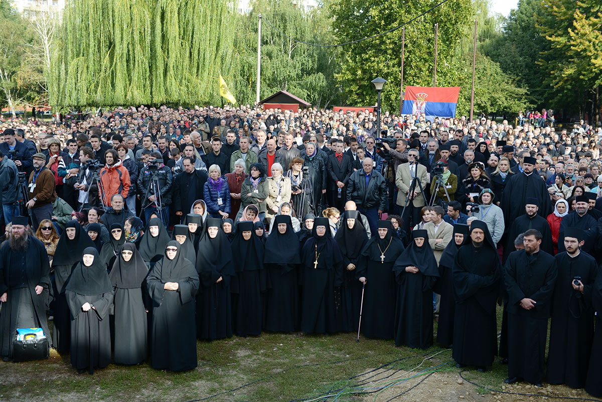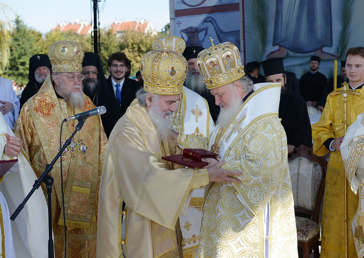 On Sunday, October 6, 2013, the feast day of the Conception of St John the Forerunner, the main celebration of the 700 th anniversary of the Edict of Milan took place in the form of Divine Liturgy on the plaza before the Church of Holy Emperors Constantine and Helena in Nis, Serbia. Nis was the birthplace of St Constantine, Equal-to-the-Apostles. The service was led by Primates of eight Local Orthodox Churches, as well as His Eminence Archbishop Mark of Berlin and Germany.