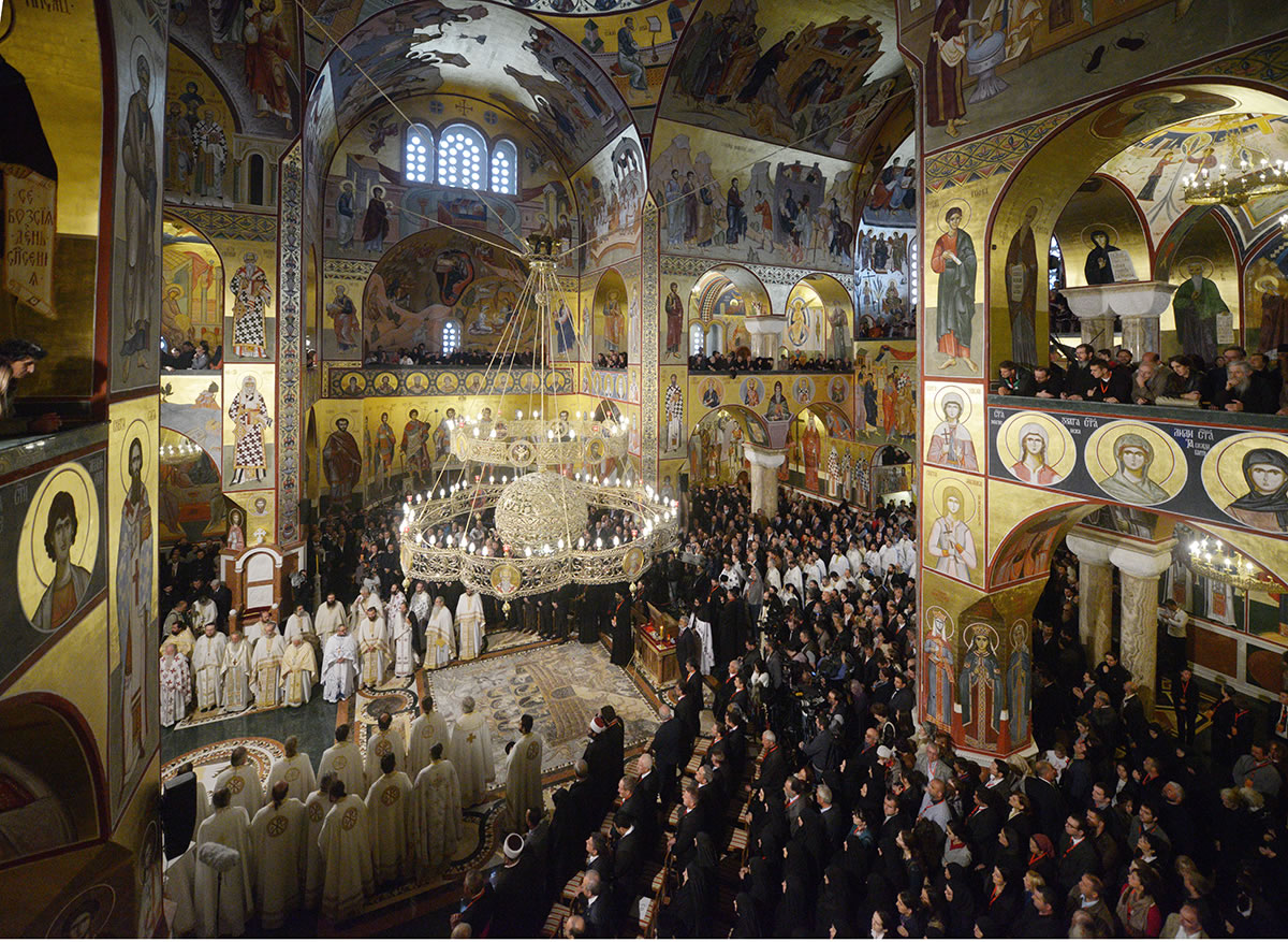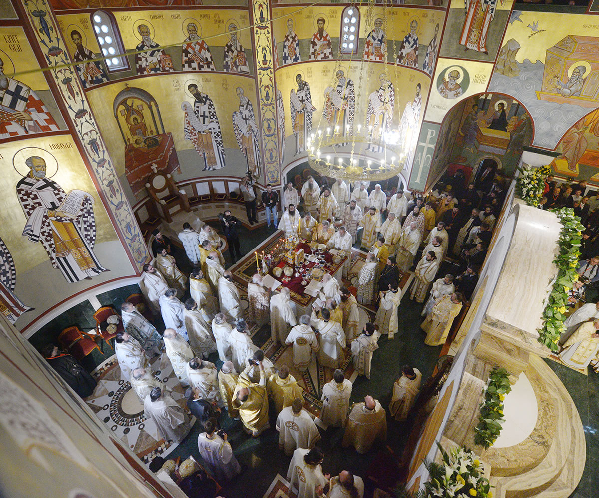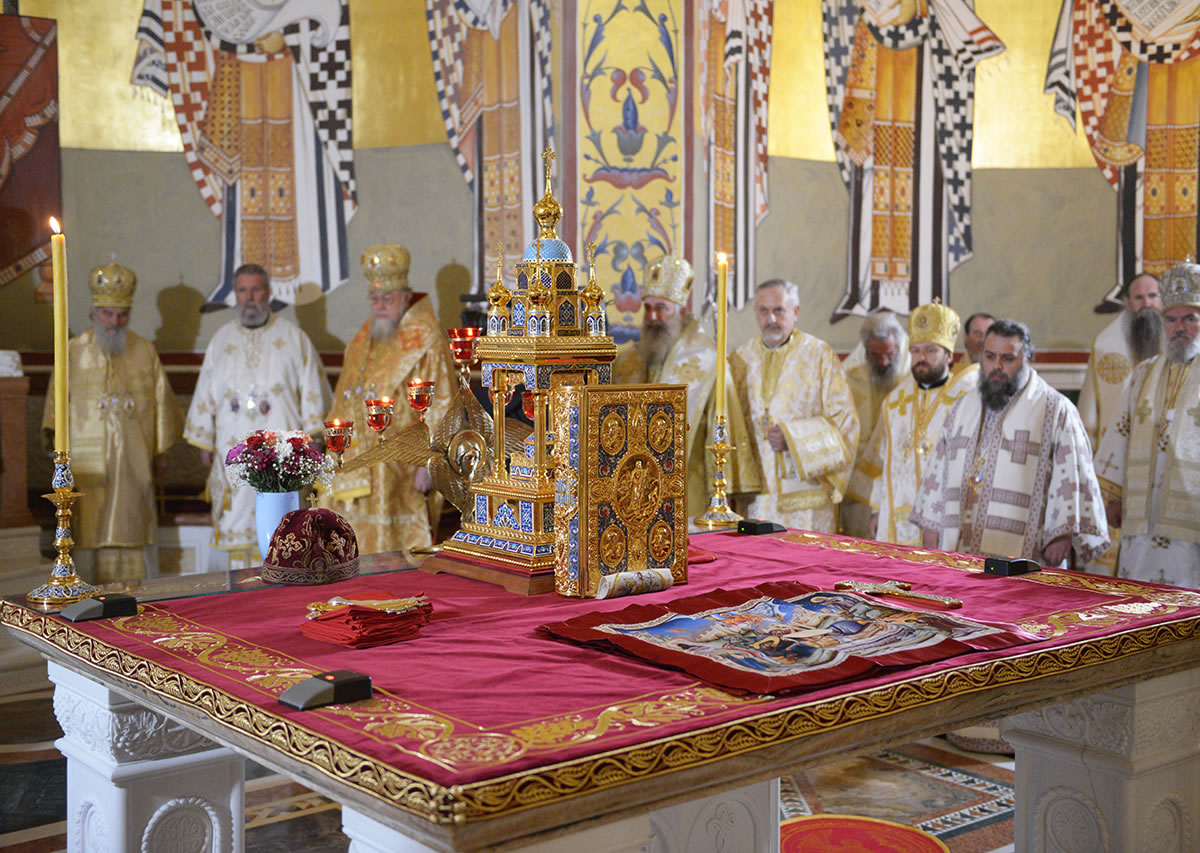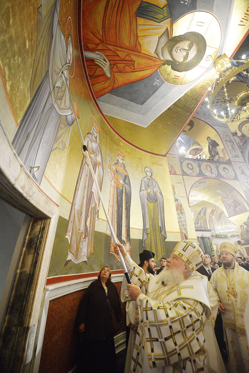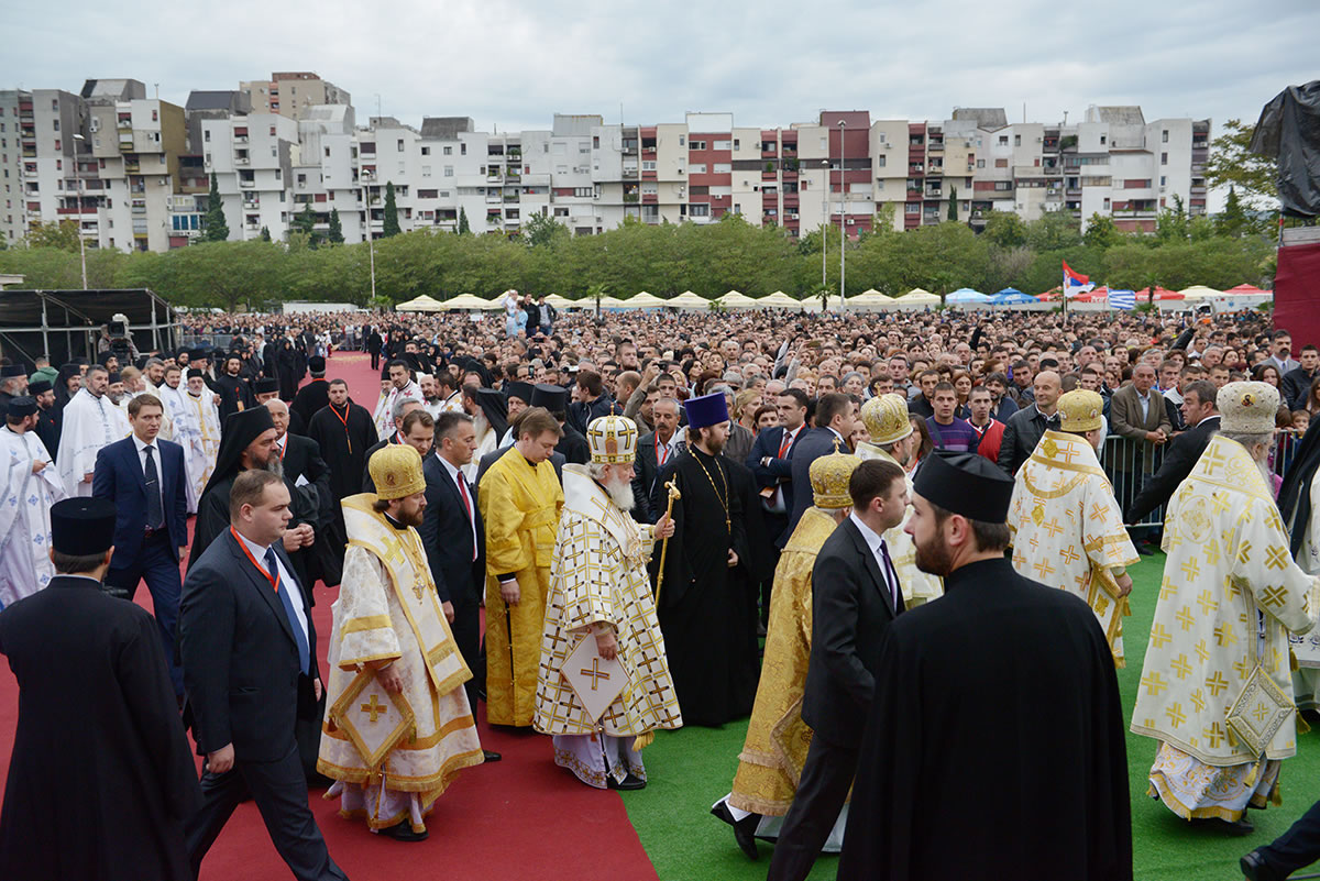 After the service, Patriarch Irinej thanked the hierarchs for their united prayers, and also congratulated His Eminence Metropolitan Amphilohije of Montenegro and the Littoral Lands on the completion of the construction of the magnificent new cathedral. Patriarch Bartholomew, who twenty years ago lay the cornerstone of the cathedral together with His Holiness Patriarch Alexey II of Moscow and All Russia and His Holiness Patriarch Paul of Serbia, said a few words in response. Patriarch Kyrill noted the history of Orthodoxy in Montenegro, but also spoke about Orthodoxy in Kosovo and Metochia.