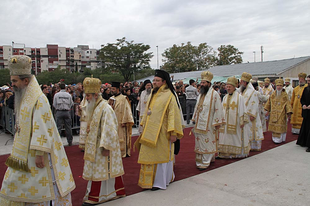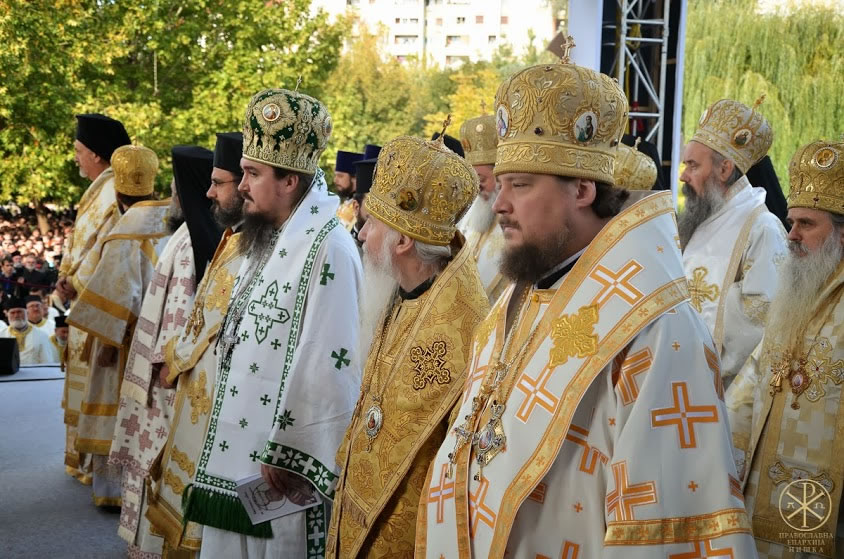 The visitors then traveled to the homeland of Holy Emperor Constantine, Equal-to-the-Apostle, the city of Nis, known in ancient times as Naissus, where the main celebrations were held. Archbishop Mark participated in divine services in the plaza before the cathedral. The services were celebrated by the Primates of Local Orthodox Churches: Patriarch Bartholomew; His Beatitude Patriarch Theophilos of Jerusalem; His Holiness Patriarch Kirill of Moscow and All Russia; Patriarch Irinej; His Beatitude Archbishop Chrysostomos of New Justiniana and All Cyprus; His Beatitude Archbishop Ieronymos of Athens and All Greece; His Beatitude Archbishop Anastasios of Tirana and All Albania; His Beatitude Metropolitan Savva of Warsaw and All Poland; His Eminence Archbishop Simeon of Olomouc-Brno, Locum Tenens of the Czech Lands and Slovakia; as well as a great number of Serbian hierarchs and members of official delegations of Local Orthodox Churches.