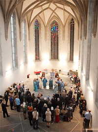 The 80 th anniversary of the founding of Holy Protection of the Mother of God Russian Orthodox Church in Zurich, Switzerland, was celebrated on October 19-20, 2013. The festive all-night vigil was headed by His Eminence Archbishop Michael of Geneva and Western Europe. Sunday Liturgy was celebrated in the oldest churchein the city known as Wasserkirche, which contains a crypt with the stone used in the martyric beheadings of SS Felix and Regula during the reign of Diocletian. These saints are the patron saints of Zurich.
