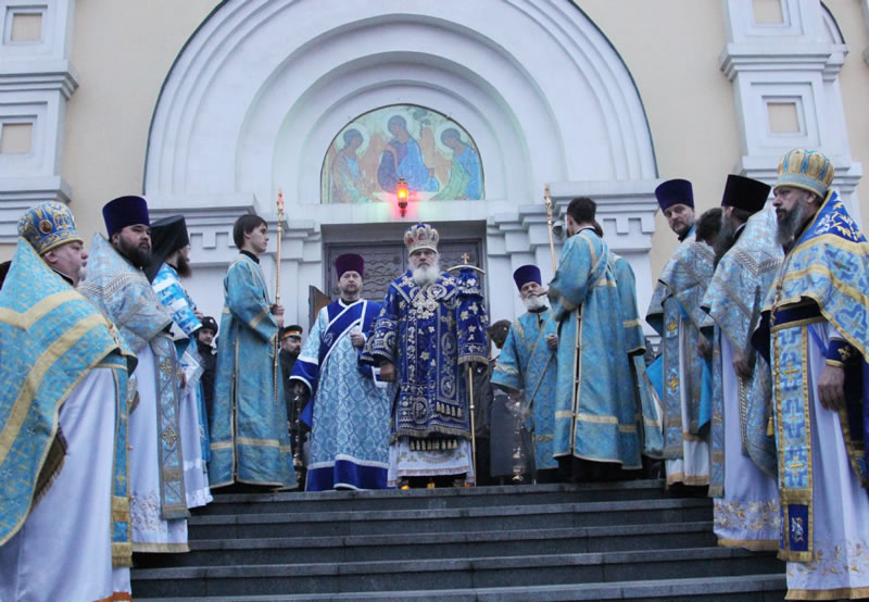 On the feast day of SS Cosmas and Damian of Asia Minor, His Eminence Metropolitan Veniamin of Vladivostok and Primorsk led divine services at Protection Cathedral in Vladivostok. He was joined in the service by His Eminence Archbishop Kyrill of San Francisco and Western America and His Grace Bishop Innokenty of Ussuriisk, Vicar of the Vladivostok Diocese of the Russian Orthodox Church. Also serving were clergymen of the Primorsk Metropoliate and the Russian Orthodox Church Outside of Russia.