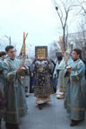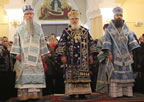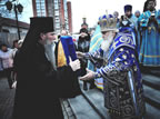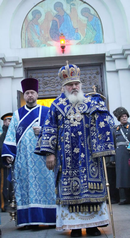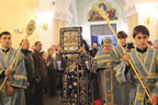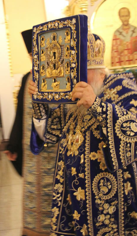 Divine services began with the ceremonious entry of the ancient Kursk-Root Icon of the Mother of God "of the Sign.” Metropolitan Veniamin led a moleben service before the commencement of Divine Liturgy.
