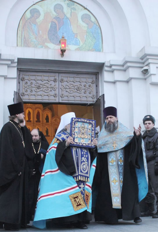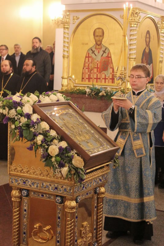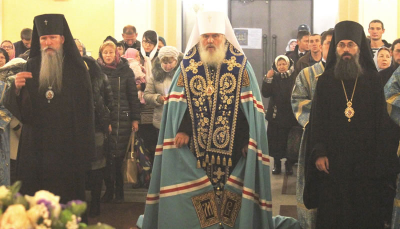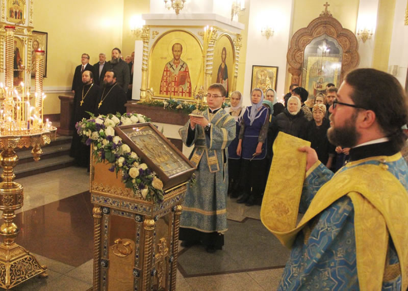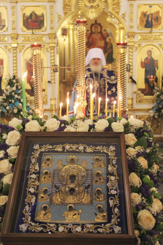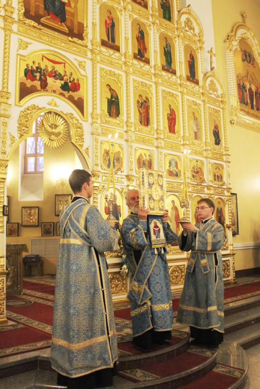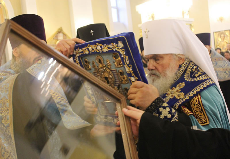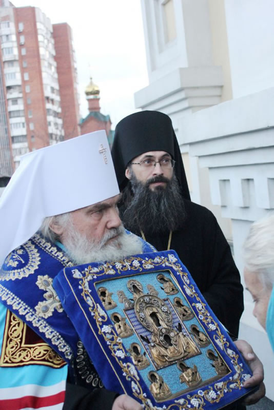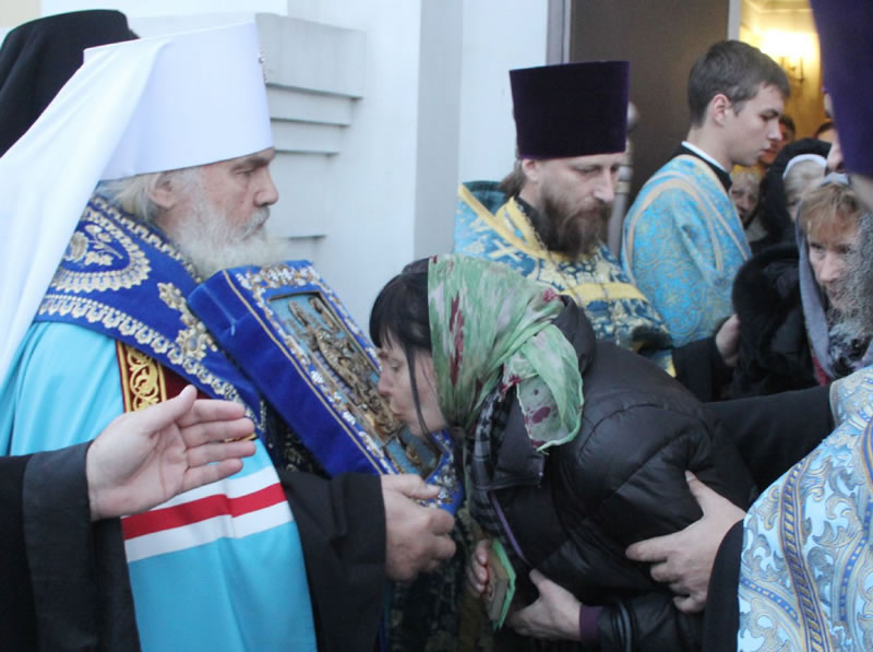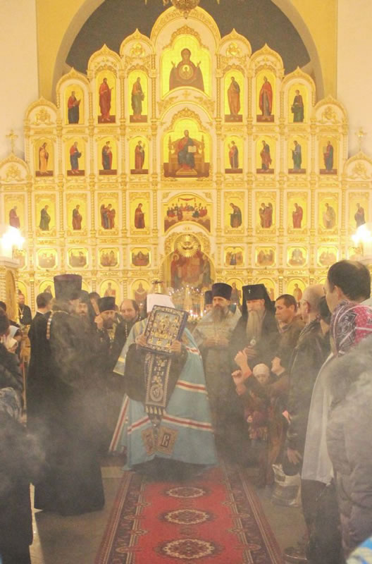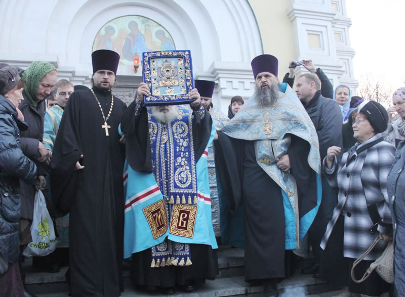 On the morning of November 18, 2013, Protection Cathedral in Vladivostok, Russia, welcomed an ancient holy icon. His Eminence Metropolitan Veniamin of Vladivostok and Primorsk led a moleben performed before the Kursk-Root Icon of the Mother of God "of the Sign.” Vladyka Veniamin was joined by His Eminence Archbishop Kyrill of San Francisco and Western America of the Russian Orthodox Church Outside of Russia and His Grace Bishop Innokenty of Ussuriisk, Vicar of the Vladivostok Diocese.