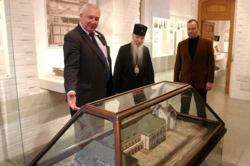 Mr Yuri Grachev, Vice President of the IPPO, and Mr Grigory Manevich, Museum Director, told Archbishop Mark about the exhibits and the creation of the museum. Mr Grachev proudly showed him models of Jerusalem's Sergiev Posad and the Podvorie of the IPPO in Bari, Italy.