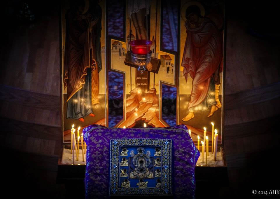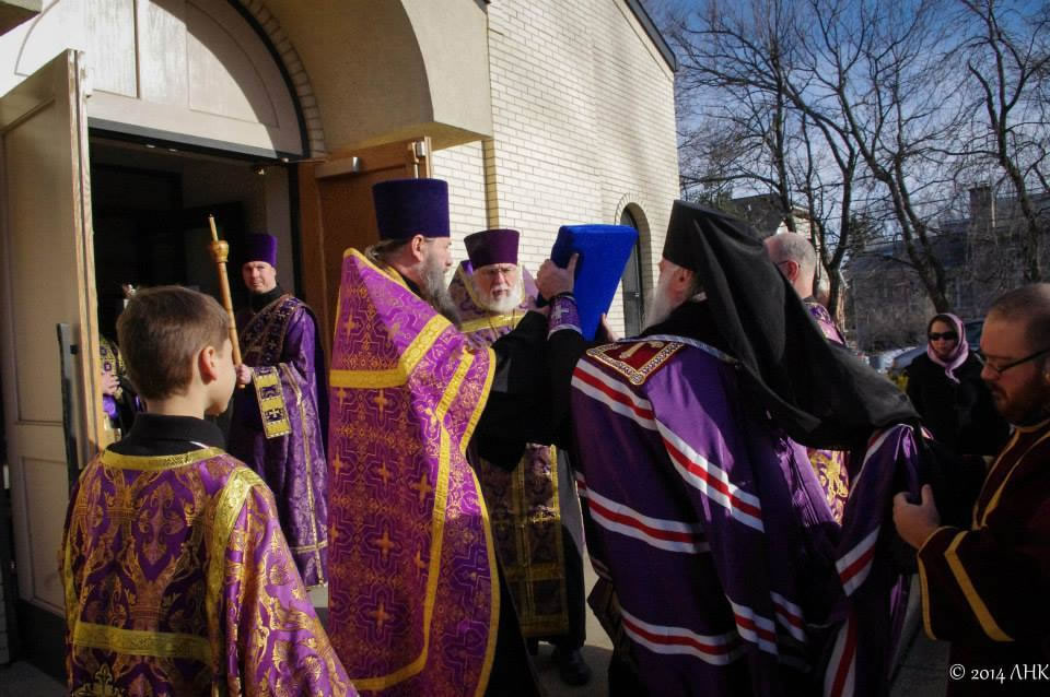 On Sunday evening, March 16, 2014, His Eminence Archbishop Alypy of Chicago, His Grace Bishop Peter of Cleveland, the clergymen and parishioners of Holy Virgin Protection Cathedral in Chicago, IL, ceremoniously greeted the Miracle-working Kursk-Root Icon of the Mother of God "of the Sign." After the greeting and blessing of the faithful, the special Great-Lenten "Passion service" was performed, commemorating the Passions of Christ.