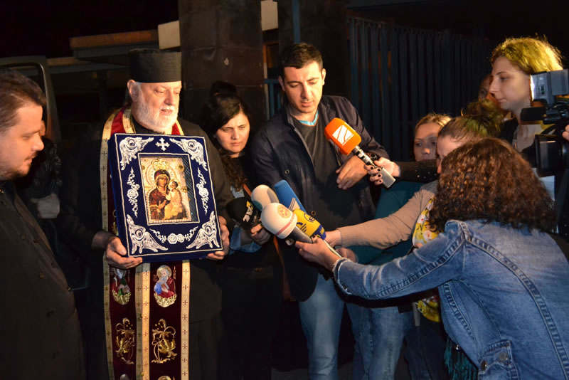 After venerating the holy image, His Holiness blessed Protopriest John Sorochka and Protopriest Vladimir Deriugin, Nectarios Yangson, keeper of the icon, and their colleagues, wishing them a successful visit and Divine aid. It is expected that the icon will visit many parishes and monasteries in Georgia.