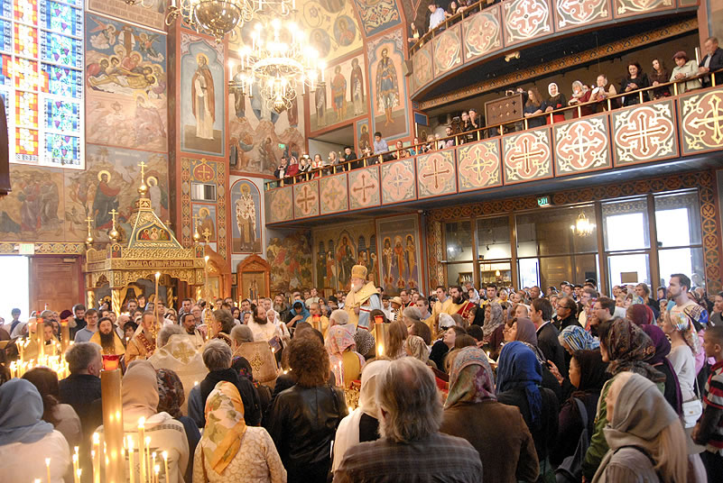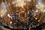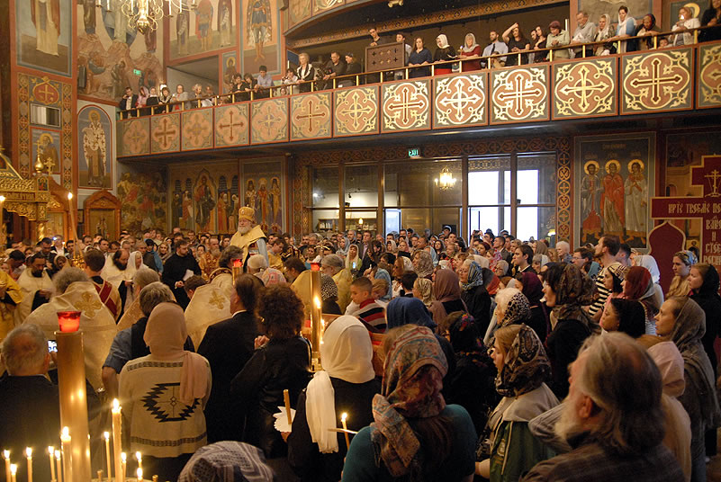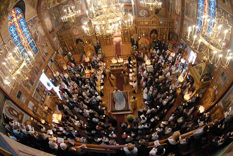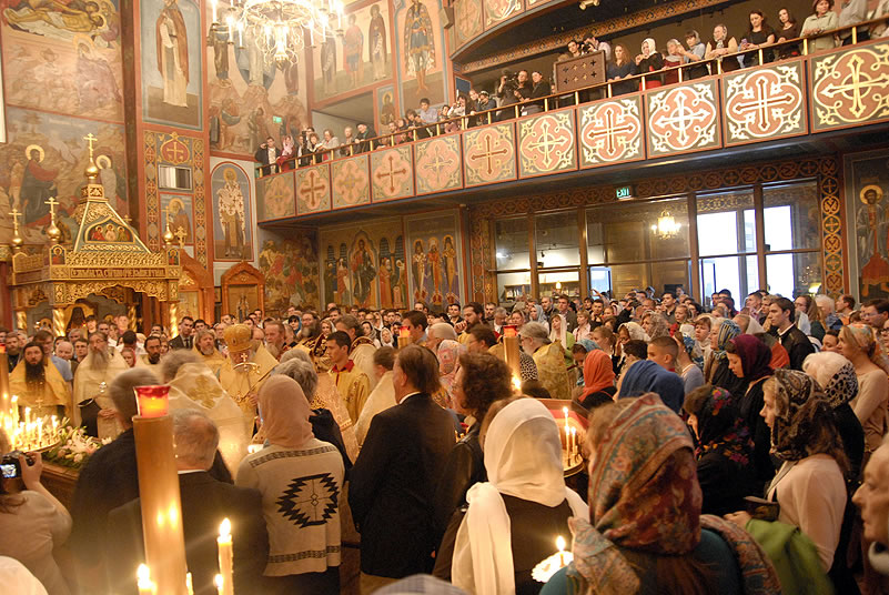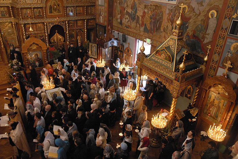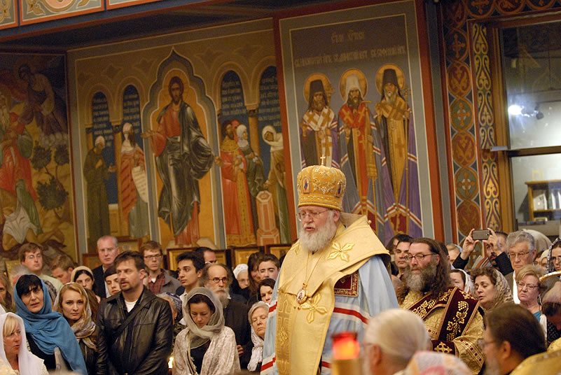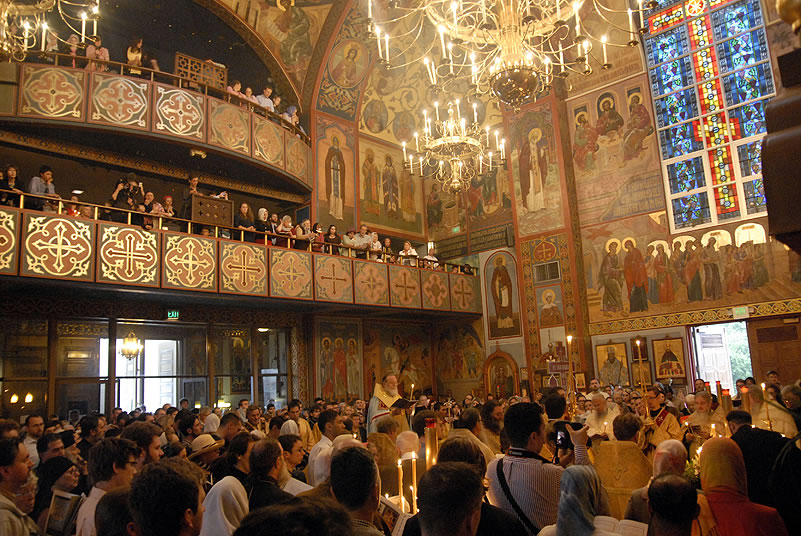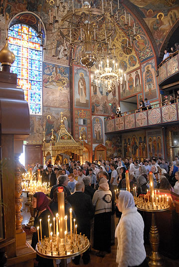 On Friday, June 27, 2014, a moleben to St John of Shanghai and San Francisco performed in the Cathedral of the Mother of God “Joy of All Who Sorrow” in San Francisco opened the 13th All-Diaspora Russian Orthodox Youth Conference. The cathedral contains the reliquary of the great saint of the Russian diaspora. Heading the service was His Eminence Metropolitan Hilarion of Eastern America and New York, First Hierarch of the Russian Orthodox Church Outside of Russia, along with clergymen from various dioceses of the Russian Church Abroad. Hierarchs of the Church Abroad prayed at the service, who are in San Francisco for a session of the Council of Bishops of ROCOR, as well as His Grace Bishop Panteleimon of Orekhov-Zuev, President of the Synodal Department of Social Service of the Moscow Patriarchate, and His Grace Bishop Iona of Obukhovsk, Vicar of the Kievan Metropoliate, both participants of the youth conference, and a host of believers from various countries.
