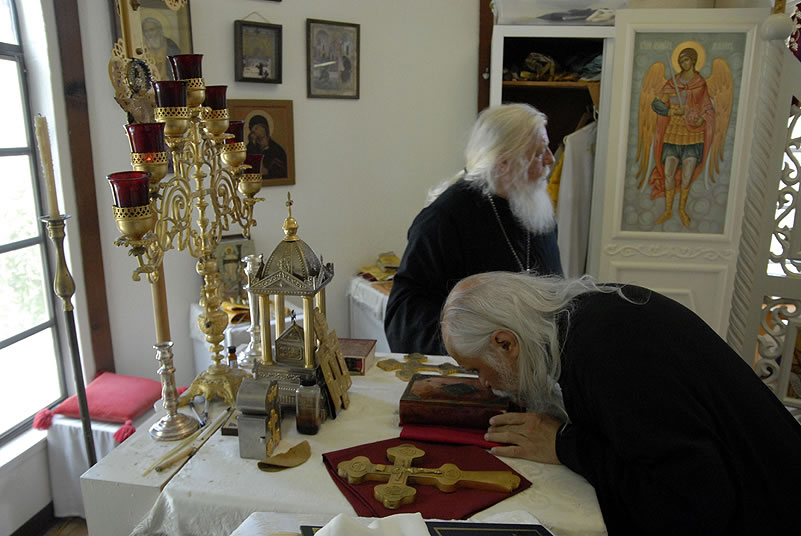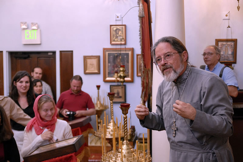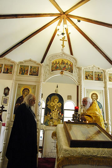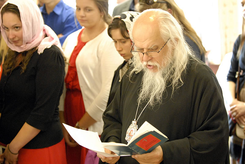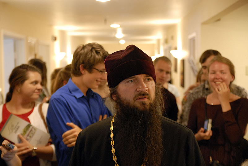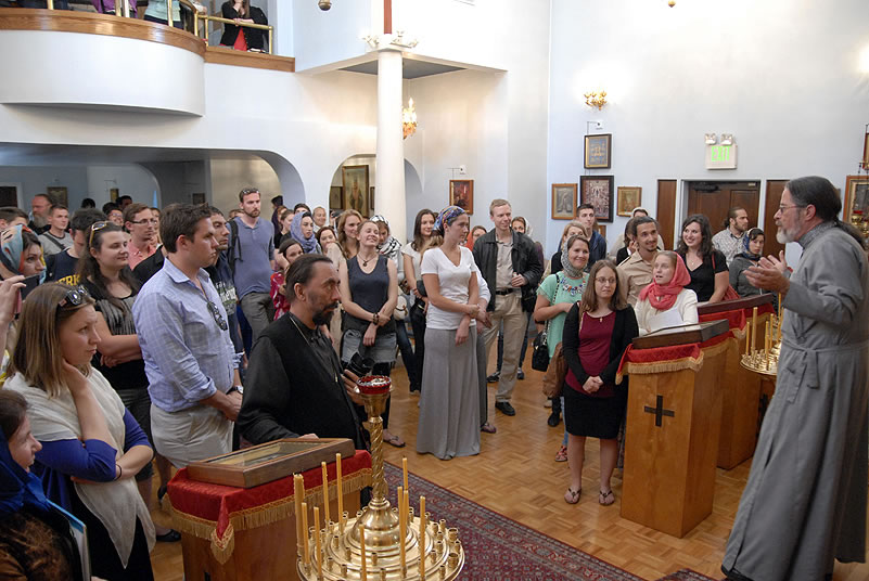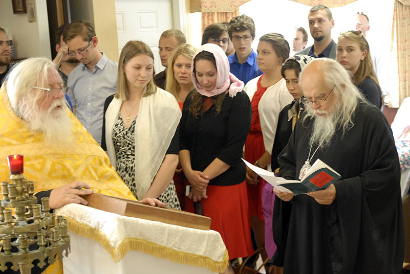 Monday, June 30, 2014, began for the youth with Divine Liturgy at the Cathedral of the Mother of God “Joy of All Who Sorrow,” at which the newly-consecrated Bishop Nicholas of Manhattan officiated for the first time as a hierarch. Praying at the service were the other members of the Council of Bishops, who are also participating in a session of the Synod of Bishops. The Kursk-Root Icon of the Mother of God "of the Sign,” whose caretaker Bishop Nicholas had been for several years, was present as well.