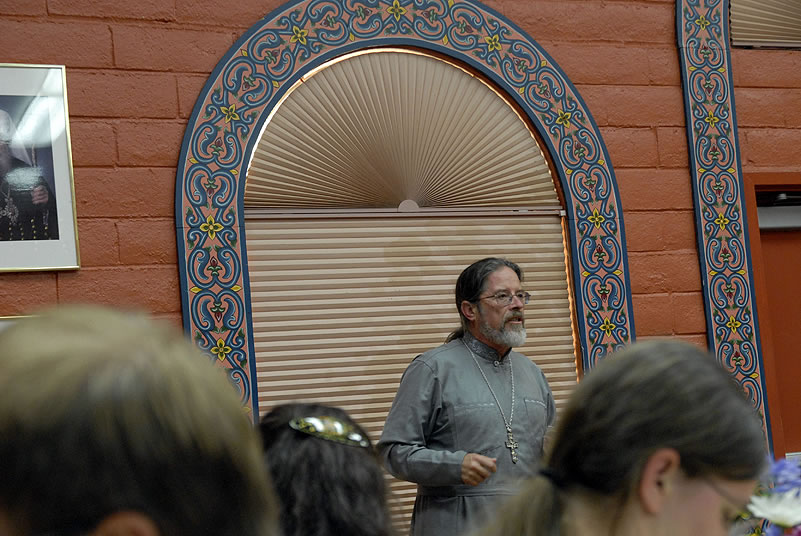Protopriest Alexander Krassovsky then gave a speech on fundraising at SS Peter and Paul Church in Santa Rosa. Afterwards, the conference again broke up into groups and had lunch, while Fr Alexander shared his recollections of the life of St John of Shanghai. The interesting talk concluded with a rousing round of applause.