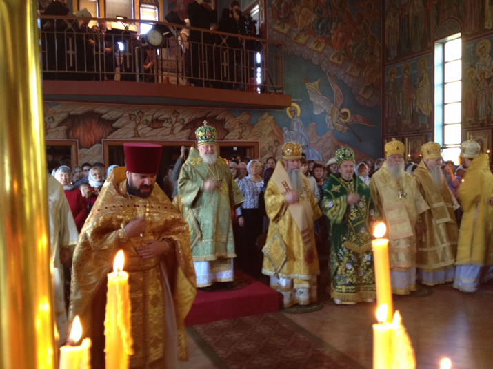 His Eminence Metropolitan Hilarion of Eastern America and New York, President of the Synod of Bishops of the Russian Orthodox Church Outside of Russia, led celebrations of the 700th anniversary of the birth of St Sergius of Radonezh at the cathedral dedicated to the saint in Cleveland, OH, on October 7-8, 2014. He was joined by the members of the Synod of Bishops, by His Grace Bishop John of Naro-Fominsk, Administrator of the Patriarchal Parishes in the USA; bishops of the Serbian Orthodox Church, including His Grace Bishop Longin of Novo-Gracanica and Mid-America and His Grace Bishop Mitrophan of Eastern America; Archimandrite Macarius (Veretennikov), Prior of Holy Trinity-St Sergius Lavra; representatives of Local Orthodox Churches and clerics of the Russian Orthodox Church Outside of Russia.