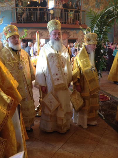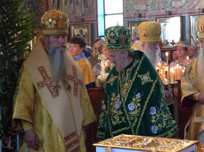After Divine Liturgy, a moleben was performed with the consecration of a newly-constructed bell tower, followed by a procession of the cross around the cathedral, after which Metropolitan Hilarion and His Grace Bishop Peter of Cleveland, Administrator of the Diocese of Chicago and Mid-America, exchanged congratulations.