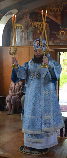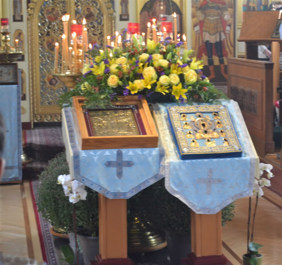 With the blessing of Metropolitan Hilarion, His Grace Bishop Nicholas of Manhattan, Vice Secretary of the Synod of Bishops, granted the award to Fr George during the minor entrance of Divine Liturgy at Holy Virgin Protection Church on its feast day. The Kursk-Root Icon of the Mother of God "of the Sign" was present at the service.