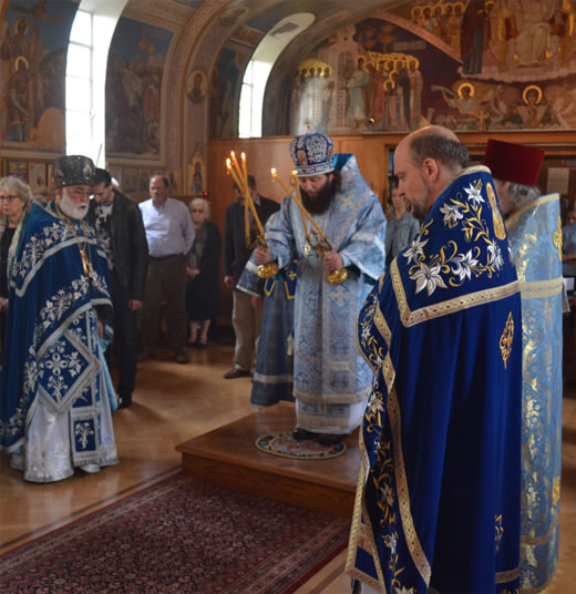 On Tuesday, October 7, 2014, the Synod of Bishops, during a regular meeting, presided over by His Eminence Metropolitan Hilarion of Eastern America and New York, First Hierarch of the Russian Orthodox Church Outside of Russia, heard and granted the intercession by Vladyka Hilarion on the awarding of the second cross to Mitred Protopriest George Larin to mark the 45th anniversary of his priestly service.