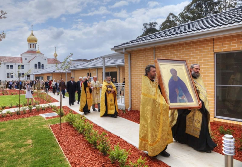 The center also recently launched a day-care program for seniors living at home. Medical attention and food services are provided by about 180 members of the Society. After Liturgy, performed by the priests of the Diocese of Australia and New Zealand of the Russian Orthodox Church Outside of Russia, a procession of the cross was held. Thereupon, a ribbon-cutting ceremony was held at the new building of the senior center. Over 400 guests then gathered in its new dining hall, in which an icon of St Sergius painted by masters at Holy Trinity-St Sergius Lavra was placed to mark the occasion.