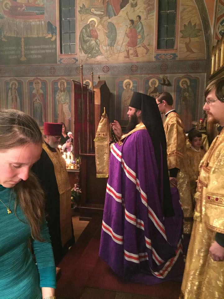 During the minor entrance, His Eminence awarded the ornamented cross to the parish rector, Protopriest Michael Taratuchin, praising his many years of service to the Holy Church.