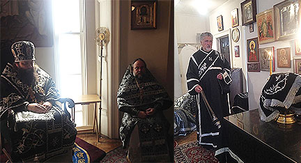 On Wednesday, February 25, 2015 , on the First Week of Great Lent, with the blessing of His Eminence Metropolitan Hilarion of Eastern America and New York (who is making an archpastoral visit to the Diocese of Australia and New Zealand), His Grace Bishop Nicholas of Manhattan, Vice Secretary of the Synod of Bishops of the Russian Orthodox Church Outside of Russia, having prayed first at matins, the reading of the hours and typica, then celebrated the Liturgy of Pre-Sanctified Gifts at the Synodal Cathedral of Our Lady "of the Sign" in New York.