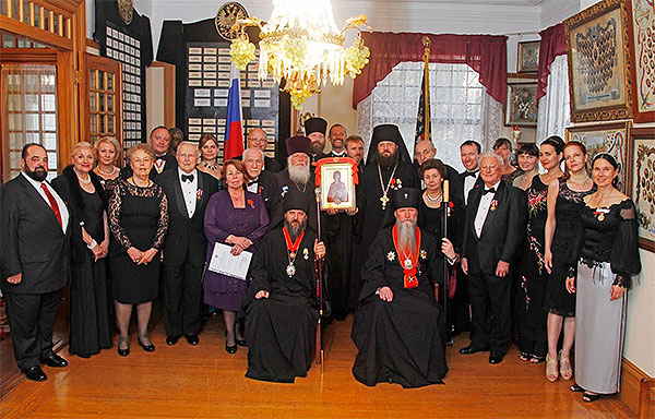 The celebrations continued at the Society of Cadets and Veterans of World War I in San Francisco. Ten Cavaliers of the Order of St. Anna and ten bearers of the medal of the Order of St. Anna were in attendance from both Northern and Southern California. Upon the arrival of all the Ladies and Cavaliers of St Anna, a memorial litiya was served. Commemorated were reposed Cavaliers and Bearers of the Medal, including the Emperors of All Russia, Cavaliers of the Order of Patriarch Alexei II of Moscow and All Russia and Metropolitan Laurus, First Hierarch of the Russian Orthodox Church Outside of Russia.