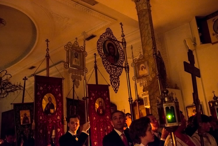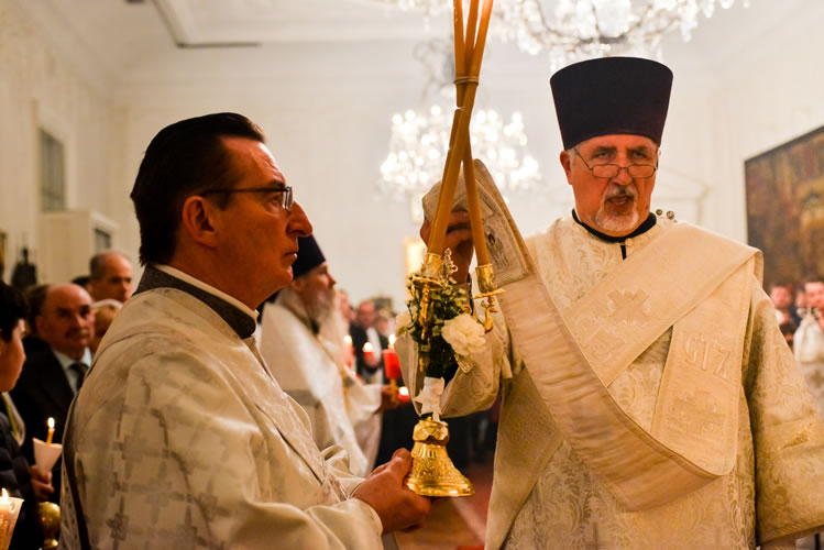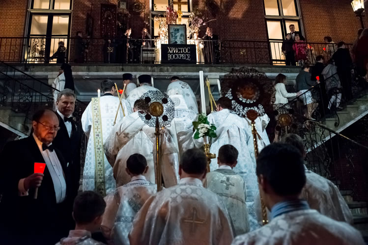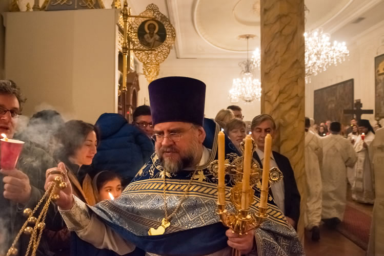 On the night of April 11-12, 2015, the "Feast Day of feast days," His Grace Bishop Nicholas of Manhattan, Deputy Secretary of the Synod of Bishops of the Russian Orthodox Church Outside of Russia, led divine services at the Synodal Cathedral of Our Lady "of the Sign" in New York. He was joined by the cathedral's clergymen, as the Cathedral Choir sang joyously under the direction of Peter Fekula to a large gathering of worshipers.