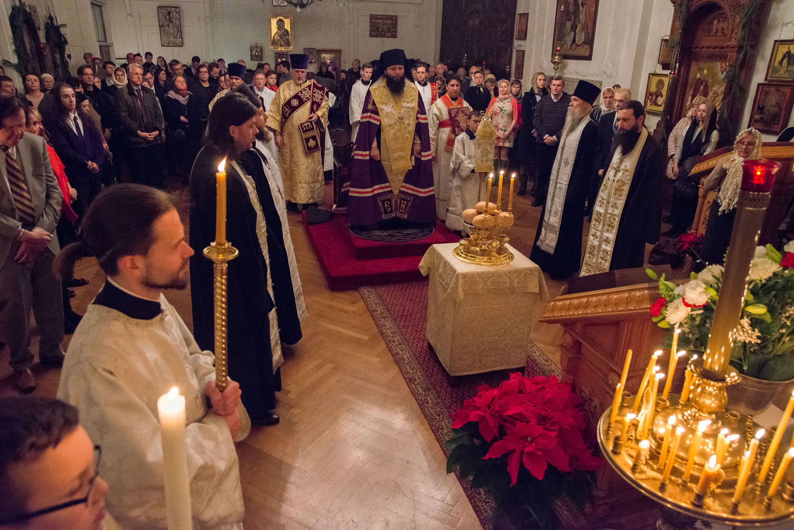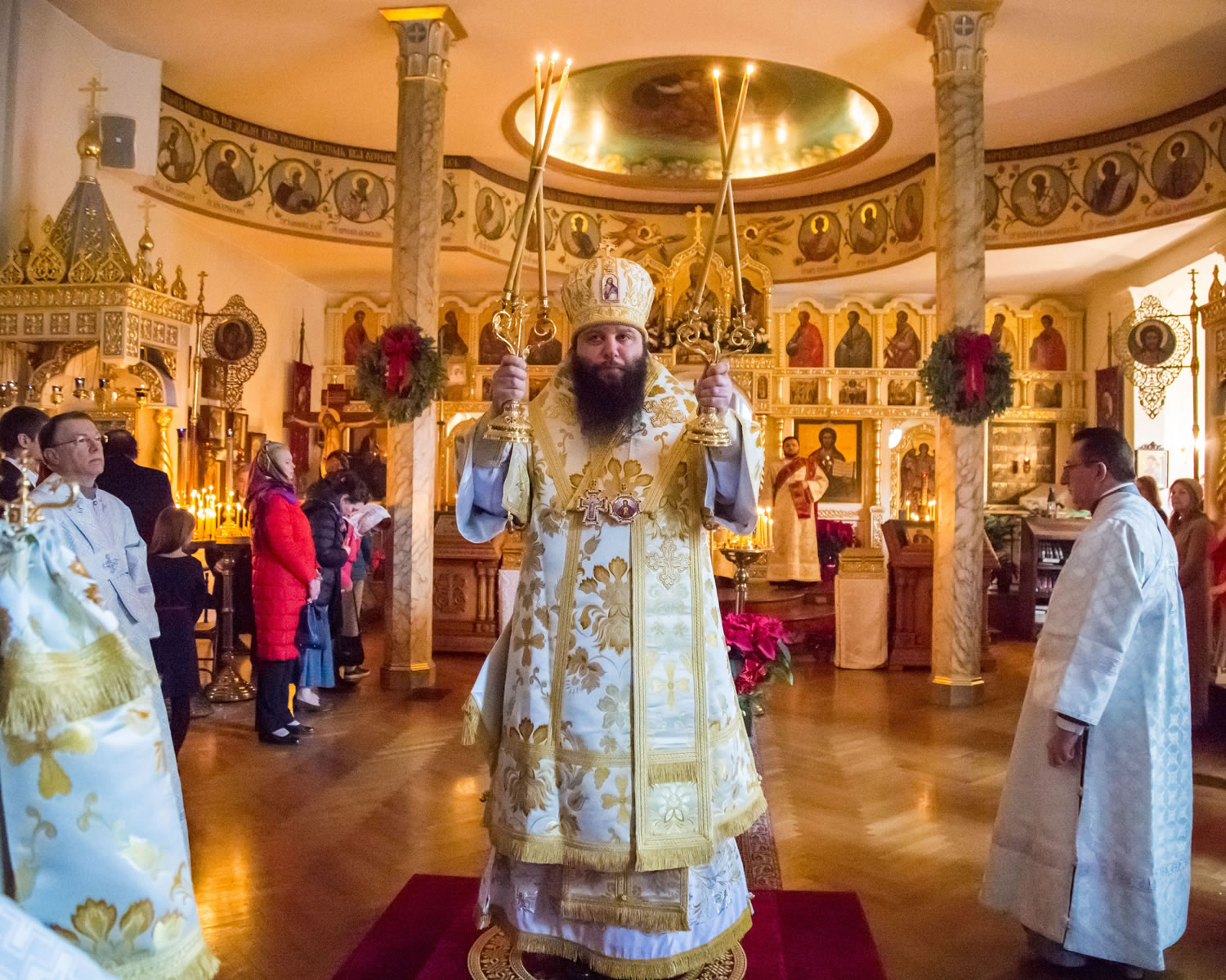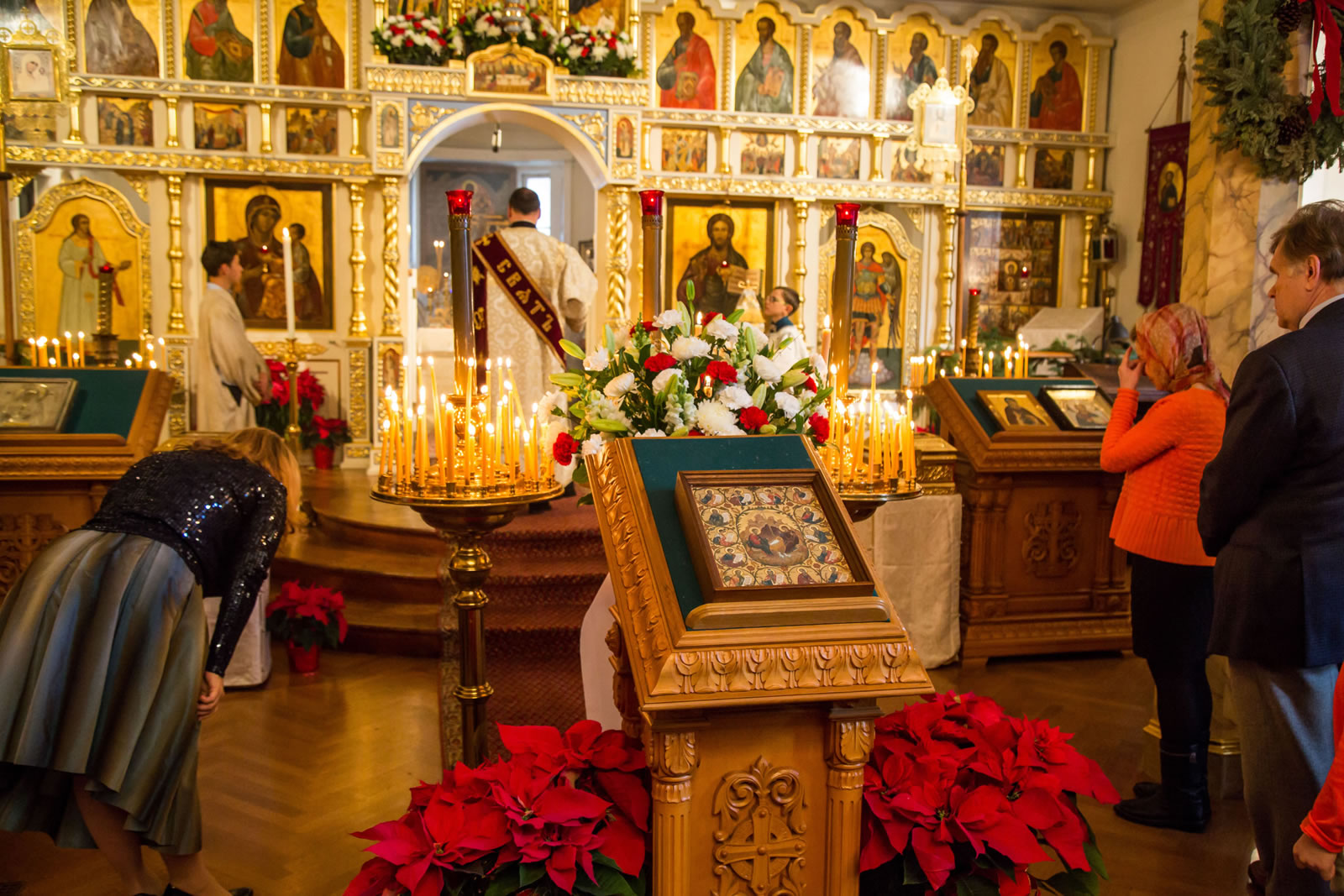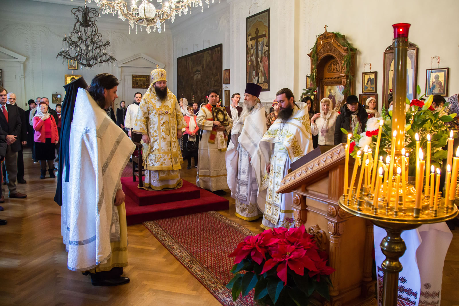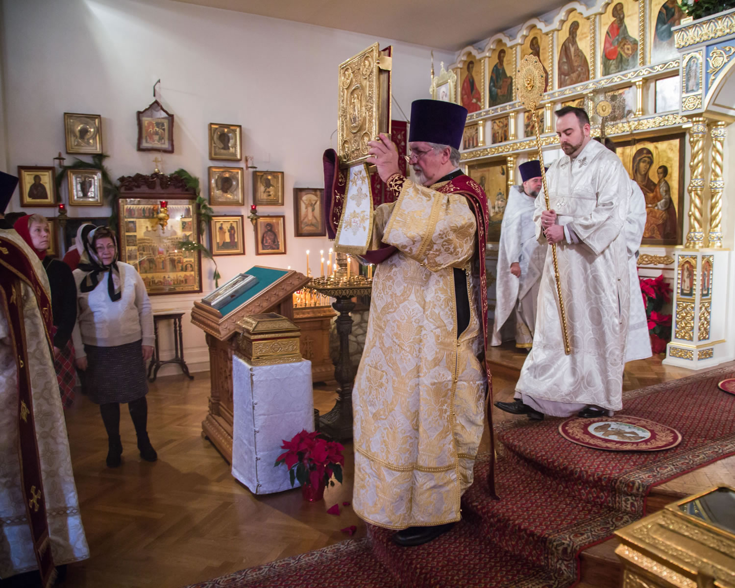 On January 6-7, 2016, the feast day of the Nativity of Christ, Divine Liturgy at the Synodal Cathedral of Our Lady “of the Sign” in New York City was headed by His Grace Bishop Nicholas of Manhattan, Deputy Secretary of the Synod of Bishops of the Russian Orthodox Church Outside of Russia, along with the cathedral clergymen. The Cathedral Choir sang under the direction of Peter Fekula, and a large gathering of worshipers was in attendance. The Kursk-Root Icon of the Mother of God "of the Sign” was present at all the services.