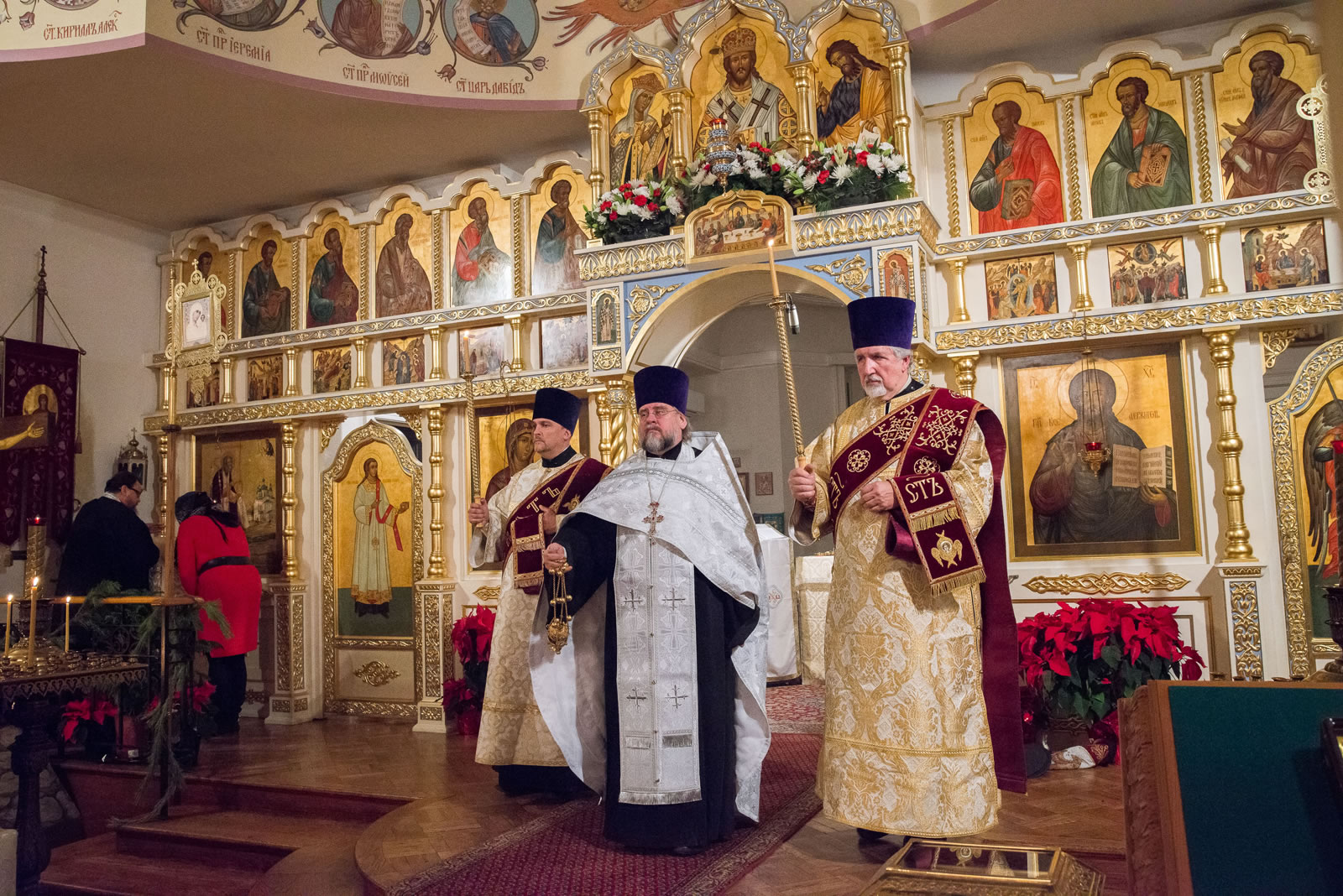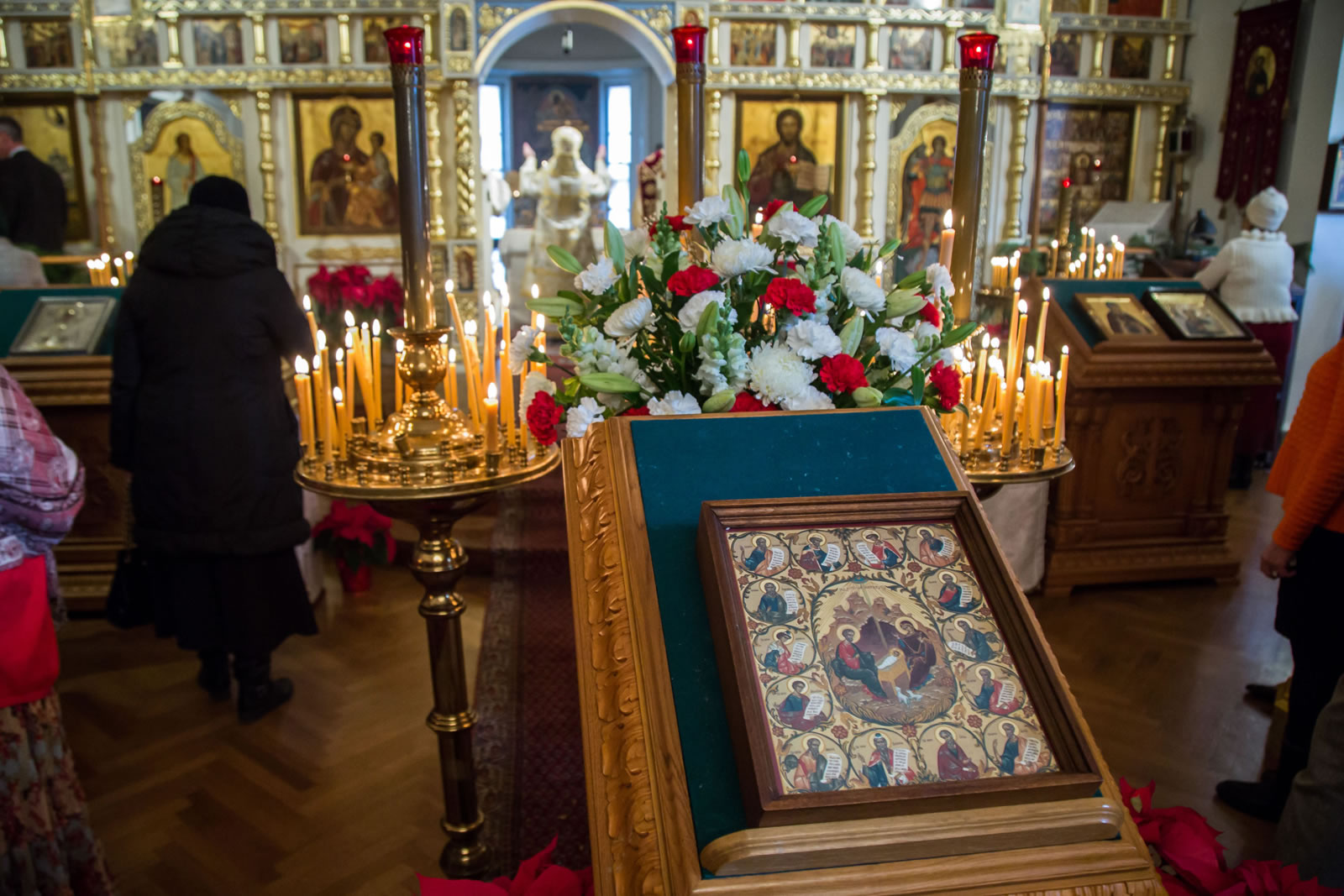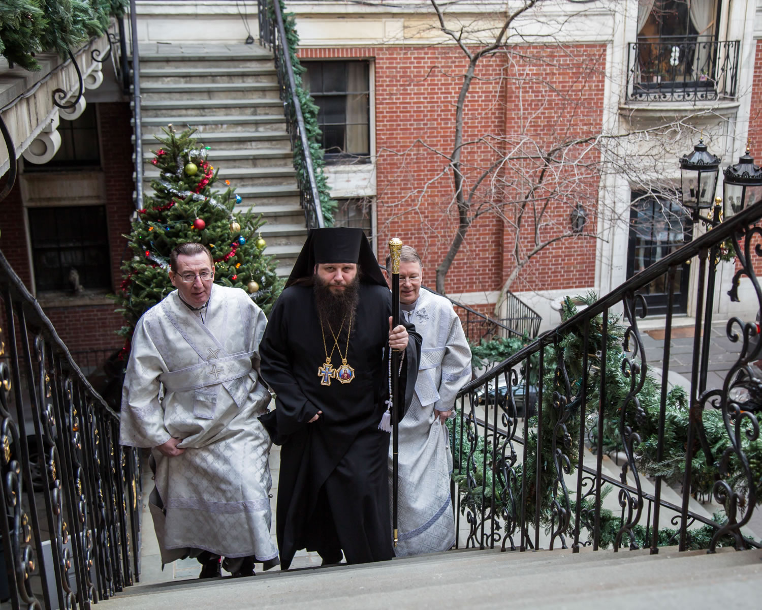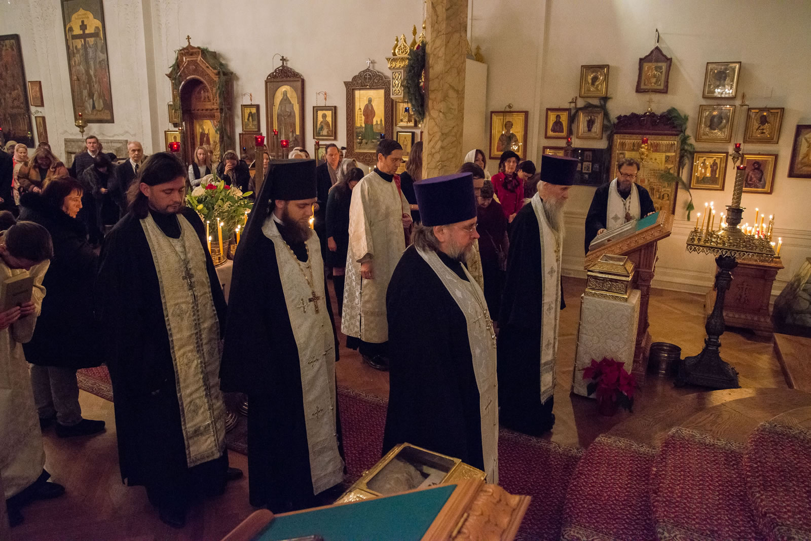 On January 6-7, 2016, the feast day of the Nativity of Christ, Divine Liturgy at the Synodal Cathedral of Our Lady “of the Sign” in New York City was headed by His Grace Bishop Nicholas of Manhattan, Deputy Secretary of the Synod of Bishops of the Russian Orthodox Church Outside of Russia, along with the cathedral clergymen. The Cathedral Choir sang under the direction of Peter Fekula, and a large gathering of worshipers was in attendance. The Kursk-Root Icon of the Mother of God "of the Sign” was present at all the services.