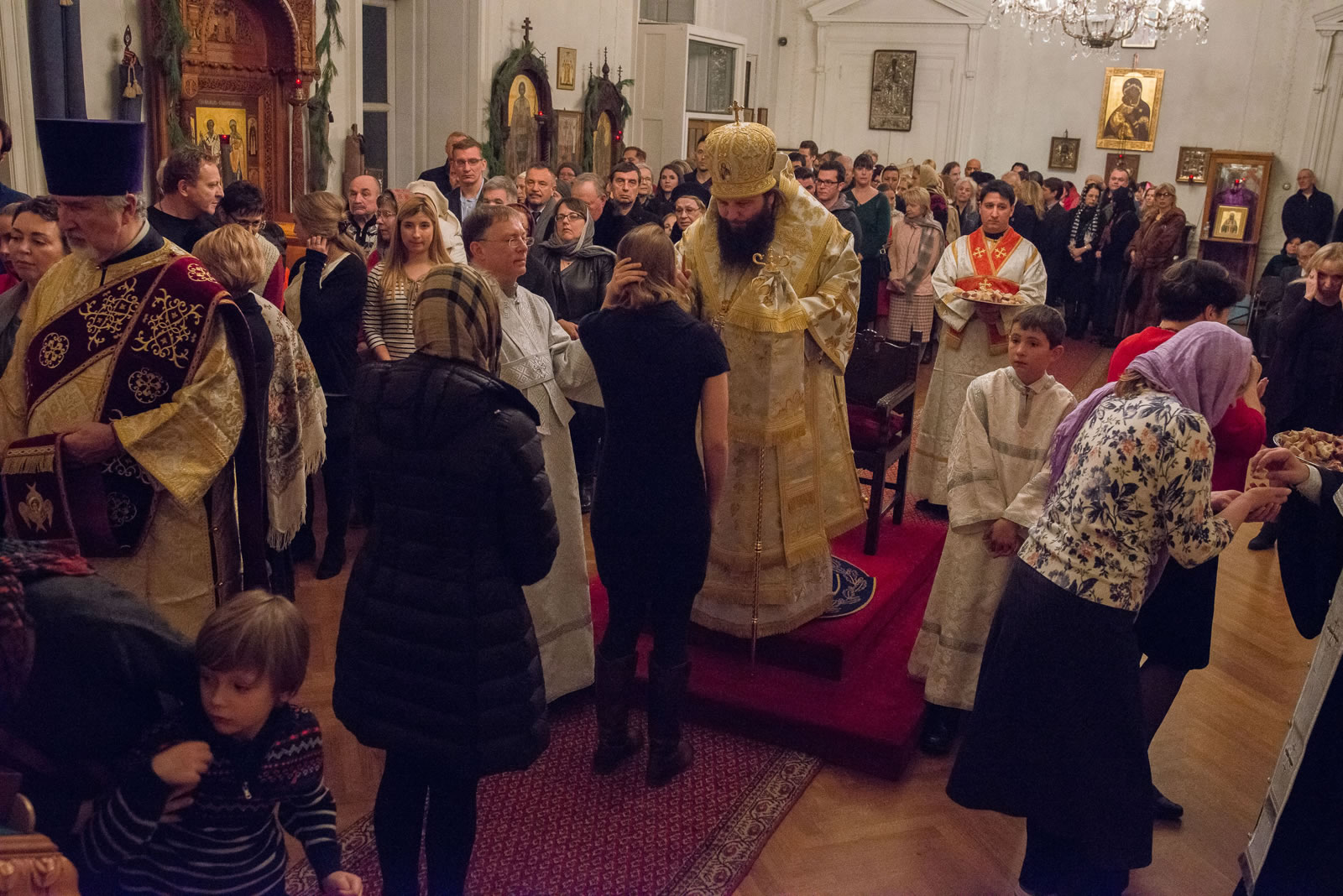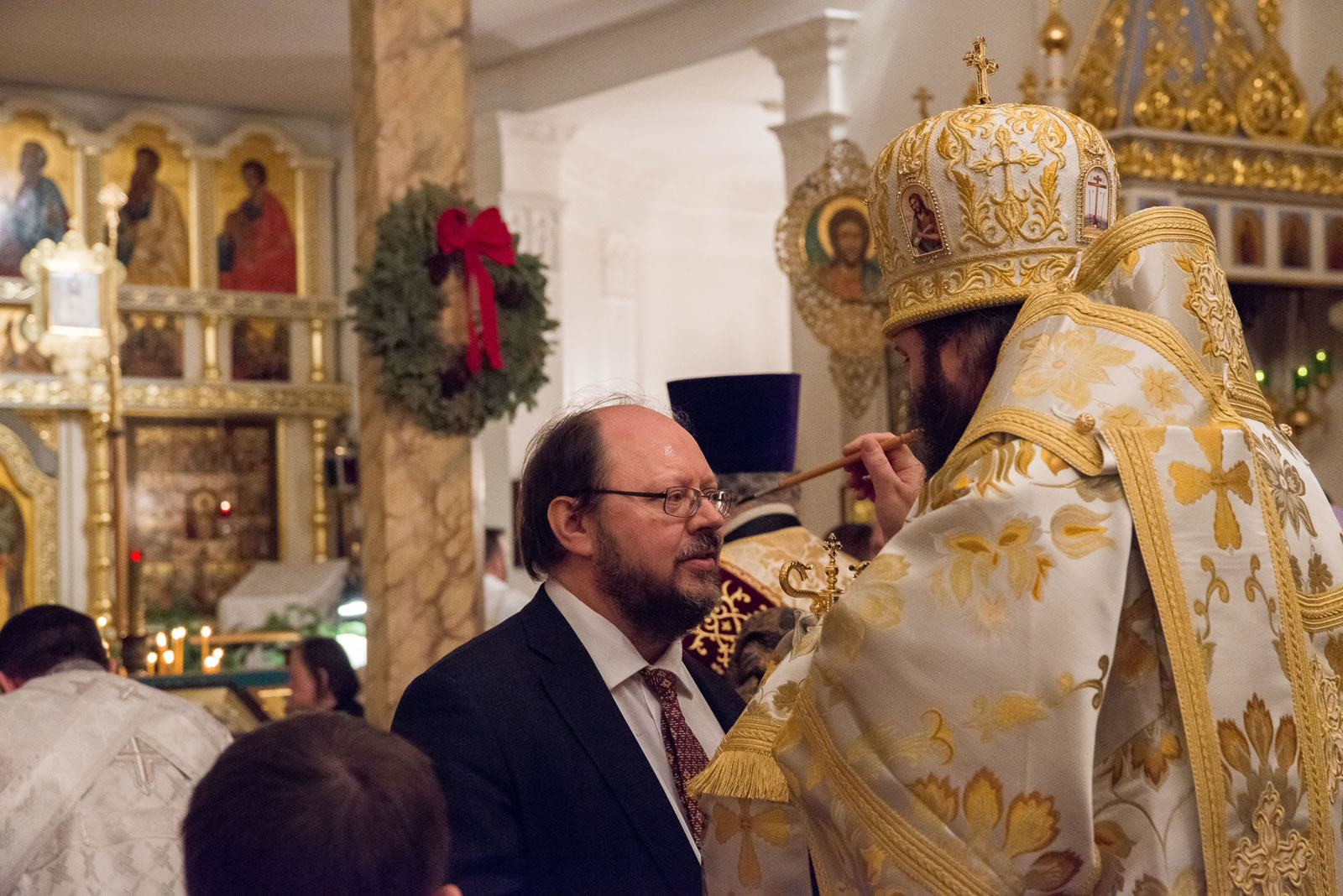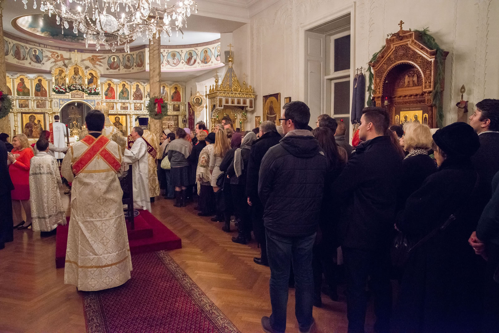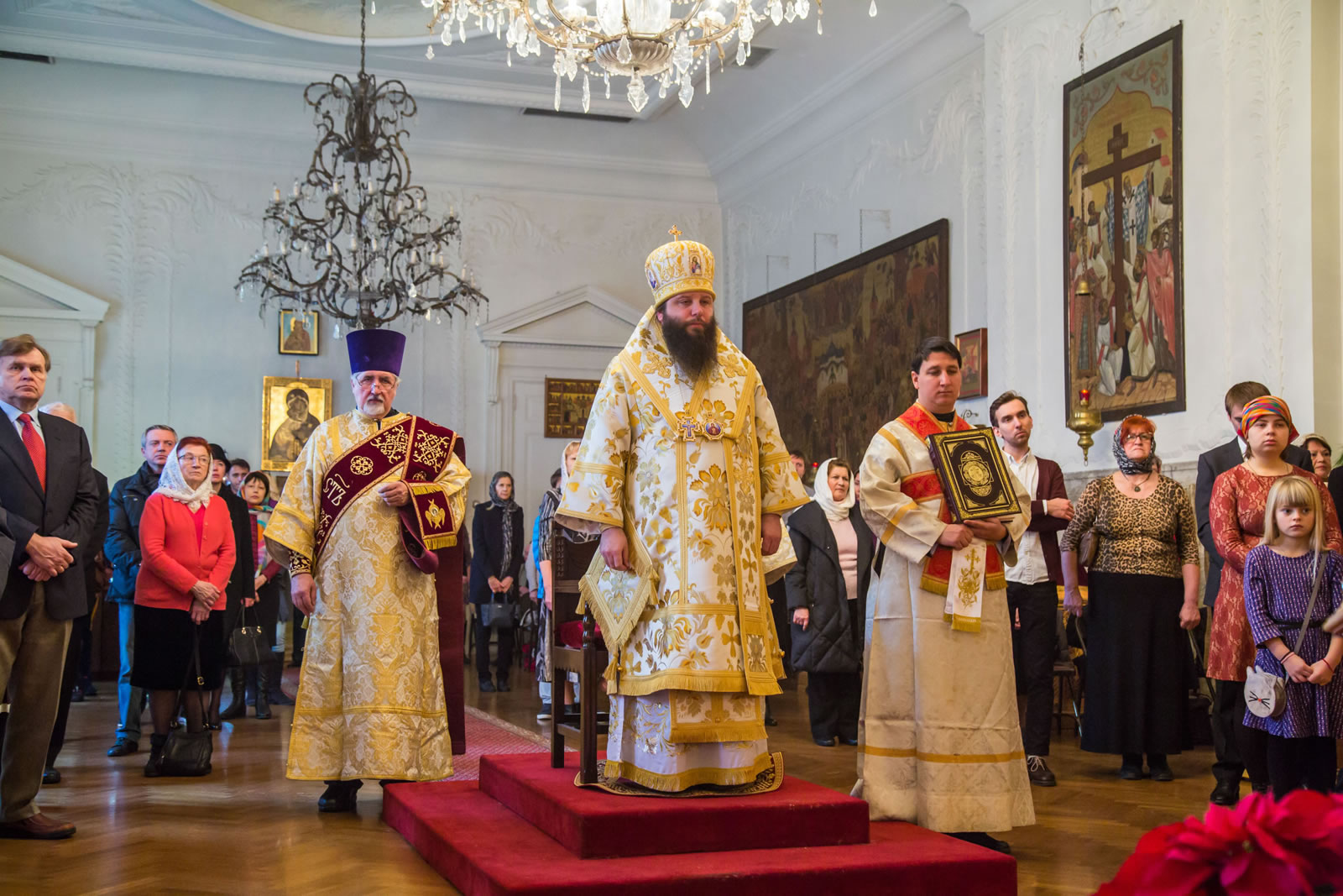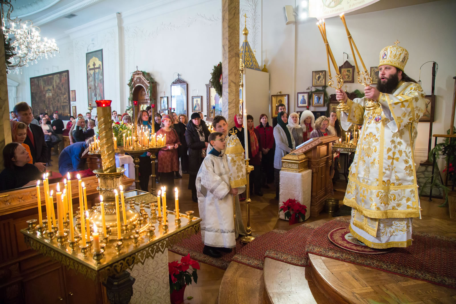 On January 6-7, 2016, the feast day of the Nativity of Christ, Divine Liturgy at the Synodal Cathedral of Our Lady “of the Sign” in New York City was headed by His Grace Bishop Nicholas of Manhattan, Deputy Secretary of the Synod of Bishops of the Russian Orthodox Church Outside of Russia, along with the cathedral clergymen. The Cathedral Choir sang under the direction of Peter Fekula, and a large gathering of worshipers was in attendance. The Kursk-Root Icon of the Mother of God "of the Sign” was present at all the services.
