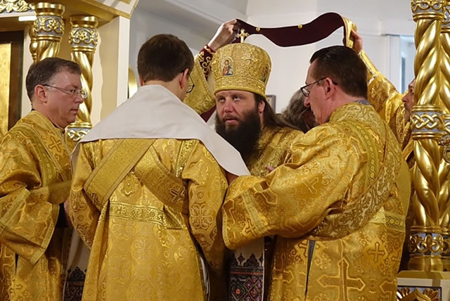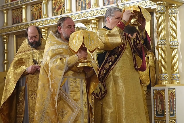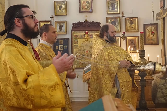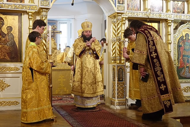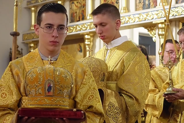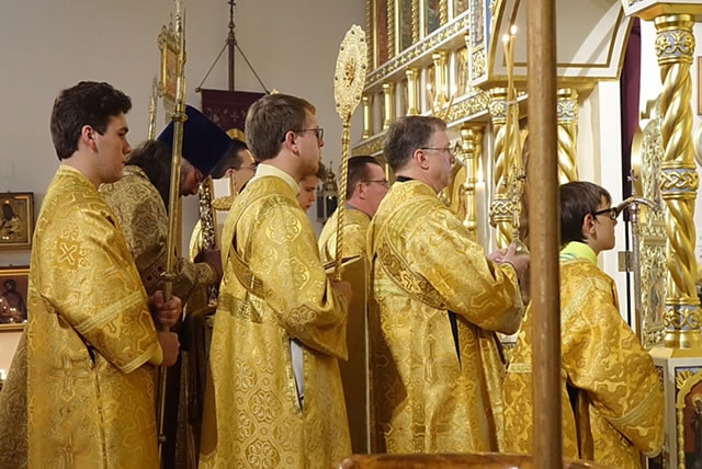 His Eminence was joined by His Grace Bishop Nicholas of Manhattan, Deputy Secretary of the Synod of Bishops, Protopriest Andrei Sommer, Senior Priest of the Cathedral and Vice President of the Synodal Youth Department, and the cathedral clergymen. Singing was the St Vladimir Youth Association Choir under the direction of Paul and Anisia Roudenko, which had recently returned from a missionary trip to Ukraine. Members of the Association also served in the altar. Present at Liturgy was the Kursk Root Icon of the Mother of God "of the Sign.”