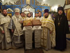 With the blessing of His Eminence, an icon containing a great relic of the Christian world, a portion of the Cincture (belt) of the Most-Holy Mother of God, was brought to the church.