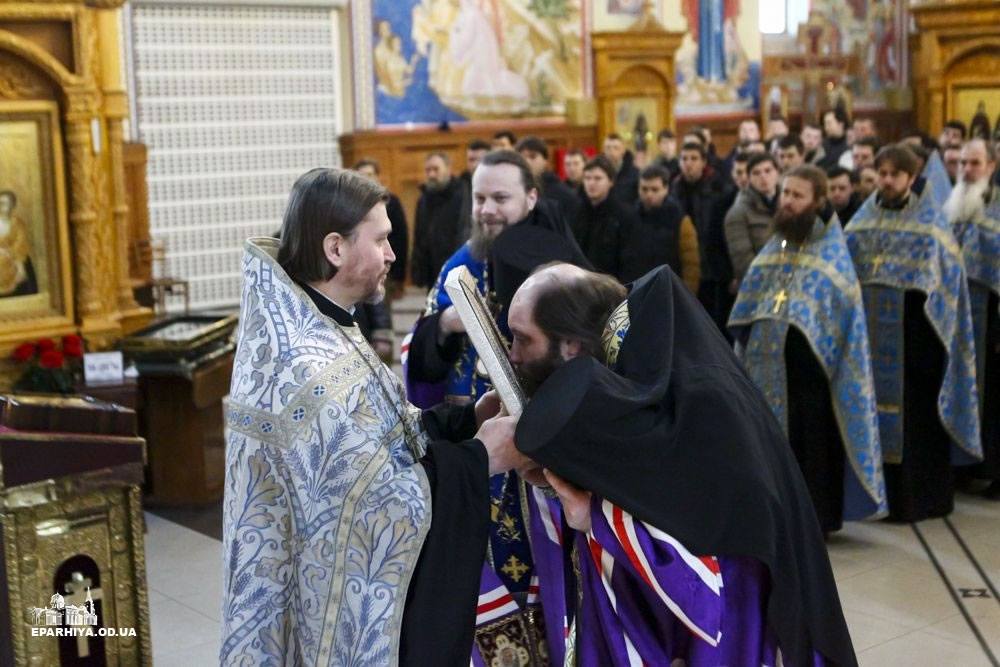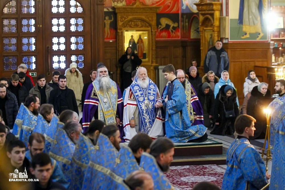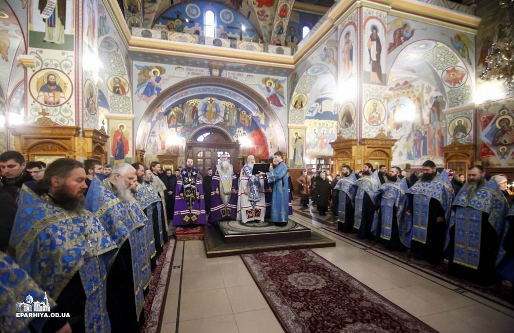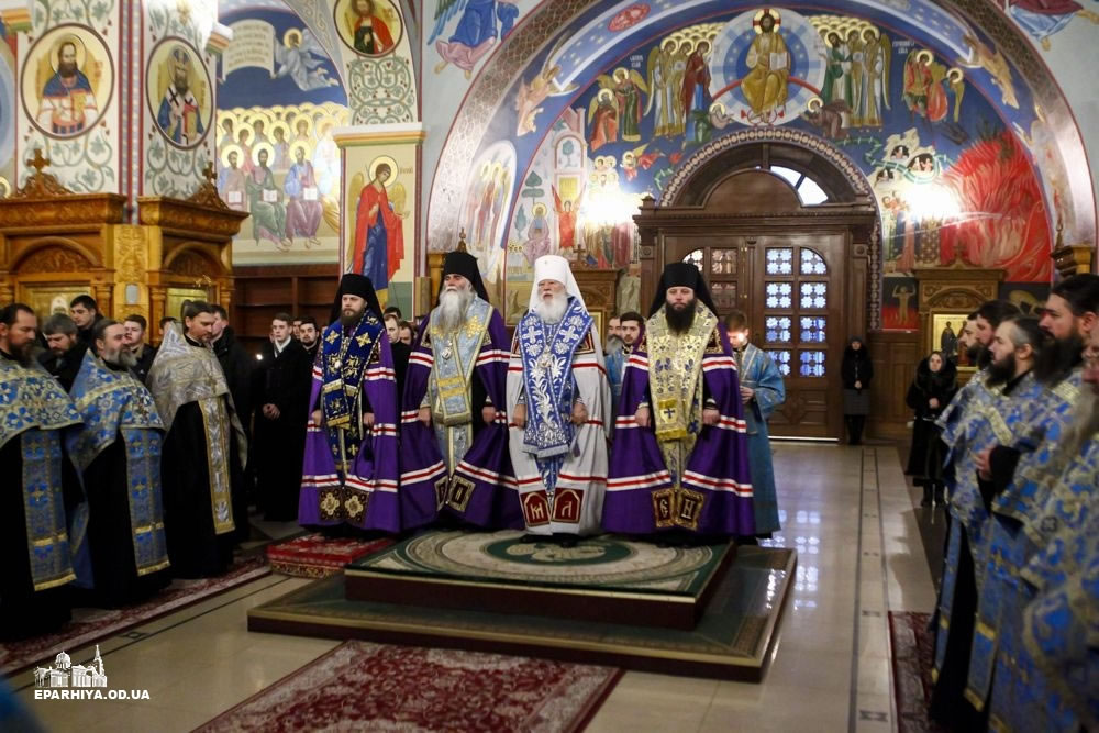 As he begins his pilgrimage to the holy sites of the Diocese of Odessa of the Ukrainian Orthodox Church, his grace Bishop Nicholas of Manhattan, on Tuesday, January 31, 2017, joined His Eminence Metropolitan Agathangel of Odessa and Izmailsk in the performance of an akathist before the "Milk-Nursing" Icon of the Mother of God and his vicar Bishops. Bishop Nicholas will remain here until February 6th, then will head for Kiev, where he will venerate the relics of Holy Martyr Vladimir, Metropolitan of Kiev, on the day of his martyrdom.