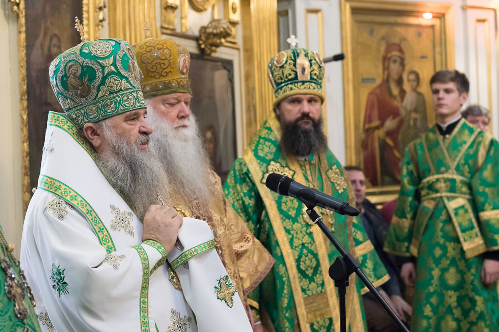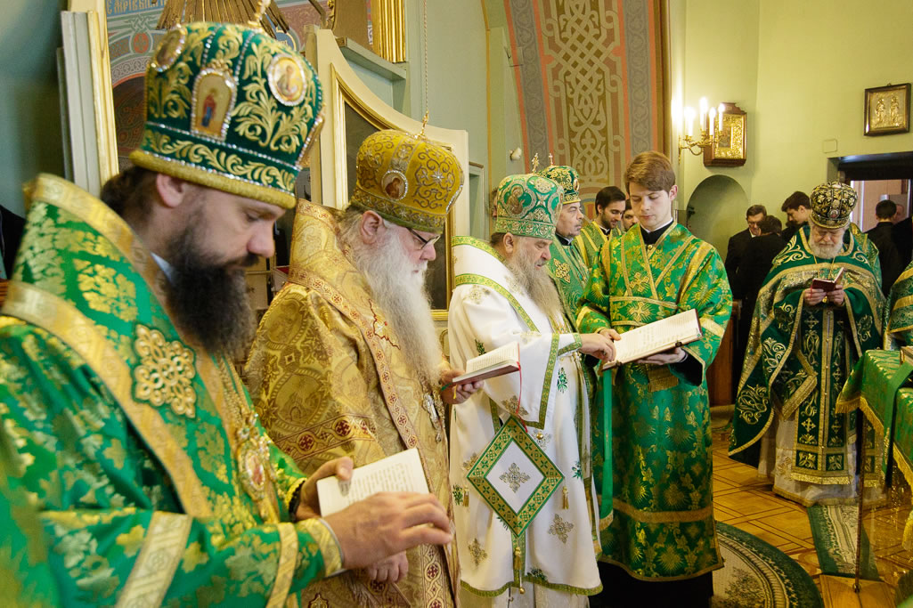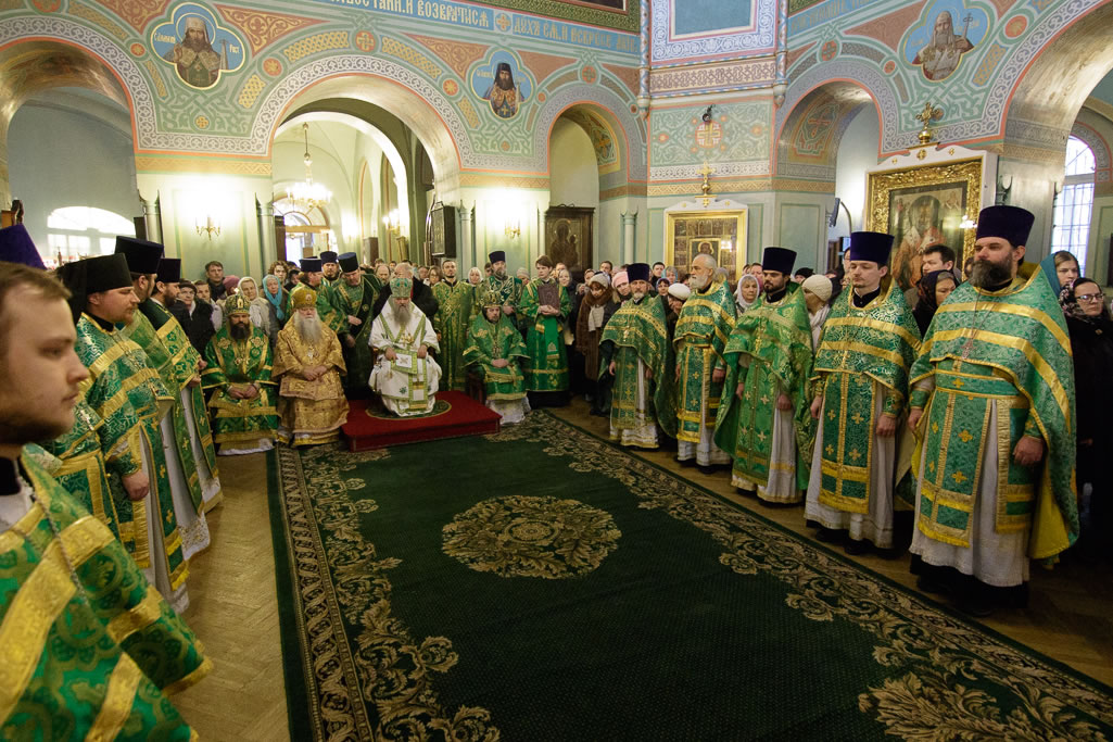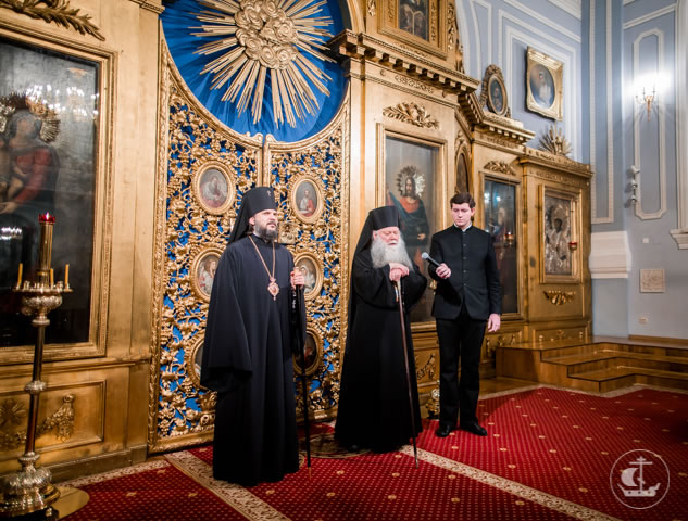 On February 4, 2017, His Eminence Archbishop Peter of Chicago and Mid-America celebrated Divine Liturgy along with His Eminence Archbishop Amvrosy of Peterhof, the teachers and students in clerical rank of St Petersburg Theological Academy’s Church of Apostle John the Theologian. At the end of services, Vladyka Amvrosy, Director of the school, welcomed the honored guest from America and noted that it was the prayers of the Holy New Martyrs of the Russian Church, whose memory was being celebrated that day, that ten years ago united the two branches of the Russian Orthodox Church, in Russia and abroad.