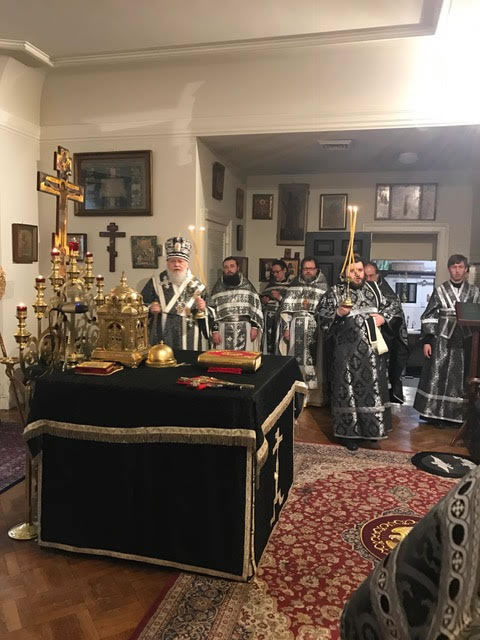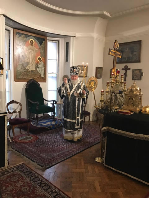 His Eminence then officiated at Divine Liturgy of Pre-Sanctified Gifts. He was joined by His Grace Bishop Nicholas of Manhattan and the clerical members of the Synodal administration and clergymen of nearby parishes.