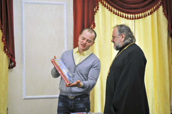 After his talk, Fr Andrei gave the Youth Department of Kazan Diocese a book on youth ministry in the Russian Church Abroad, titled From the West to the East, which he authored. The leader of the Kazan youth department, Artyom Garanin then thanked Fr Andrei and gave the ROCOR delegation an album of the Orthodox Churches of Tatarstan. The ensuing conversations then centered on developing and continuing contacts between youth groups from the East and West.