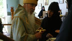 His Grace Bishop Nicholas of Manhattan then performed a moleben to begin the convention of the Council of Bishops, after which the member hierarchs proceeded to the meeting hall and sang “This Day the Grace of the Holy Spirit Gathers Us.” His Eminence Metropolitan Hilarion of Eastern America and New York, First Hierarch of ROCOR, then opened the meeting with a greeting, wishing Divine aid to all the members of the Council. The bishops, who had already interceded for the awarding of a second panaghia to their Primate, listened as Archbishop Mark read a letter from His Holiness Patriarch Kirill to the Council, and decided to appeal to His Holiness to grant the requested award to Metropolitan Hilarion.